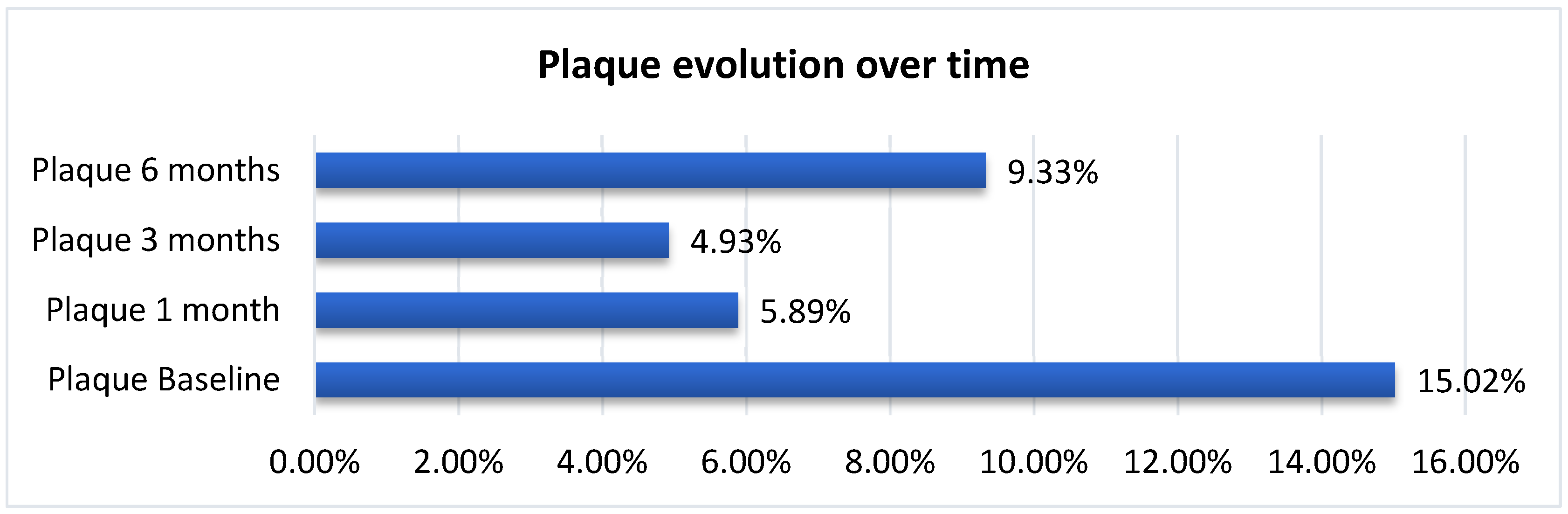 - Early phase (baseline-1 month): the strong interdependence between all three parameters reflects active inflammation, plaque-driven tissue breakdown, and early reparative activity.