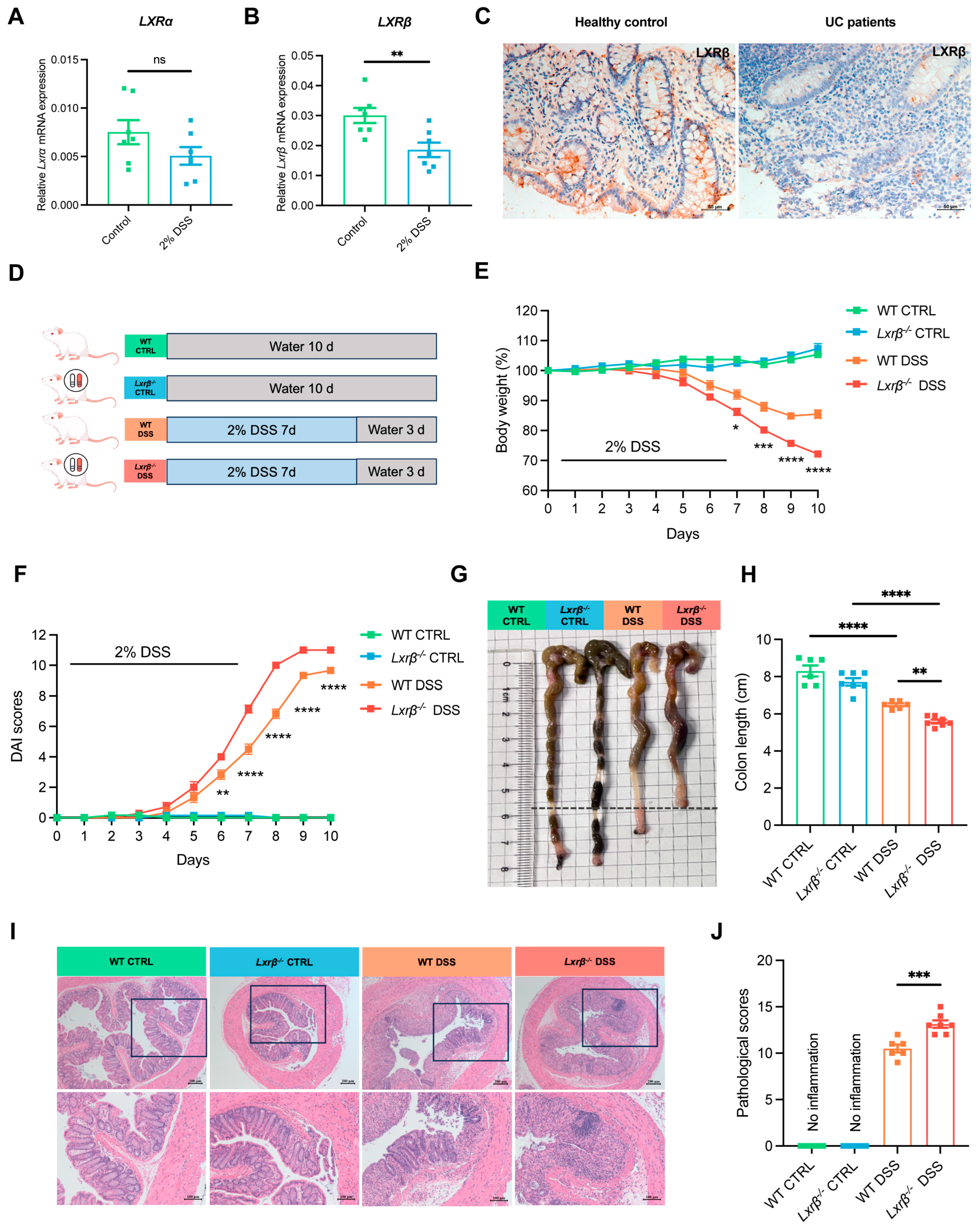 3.1. LXRβ-Deficient Mice Develop More Severe Colitis