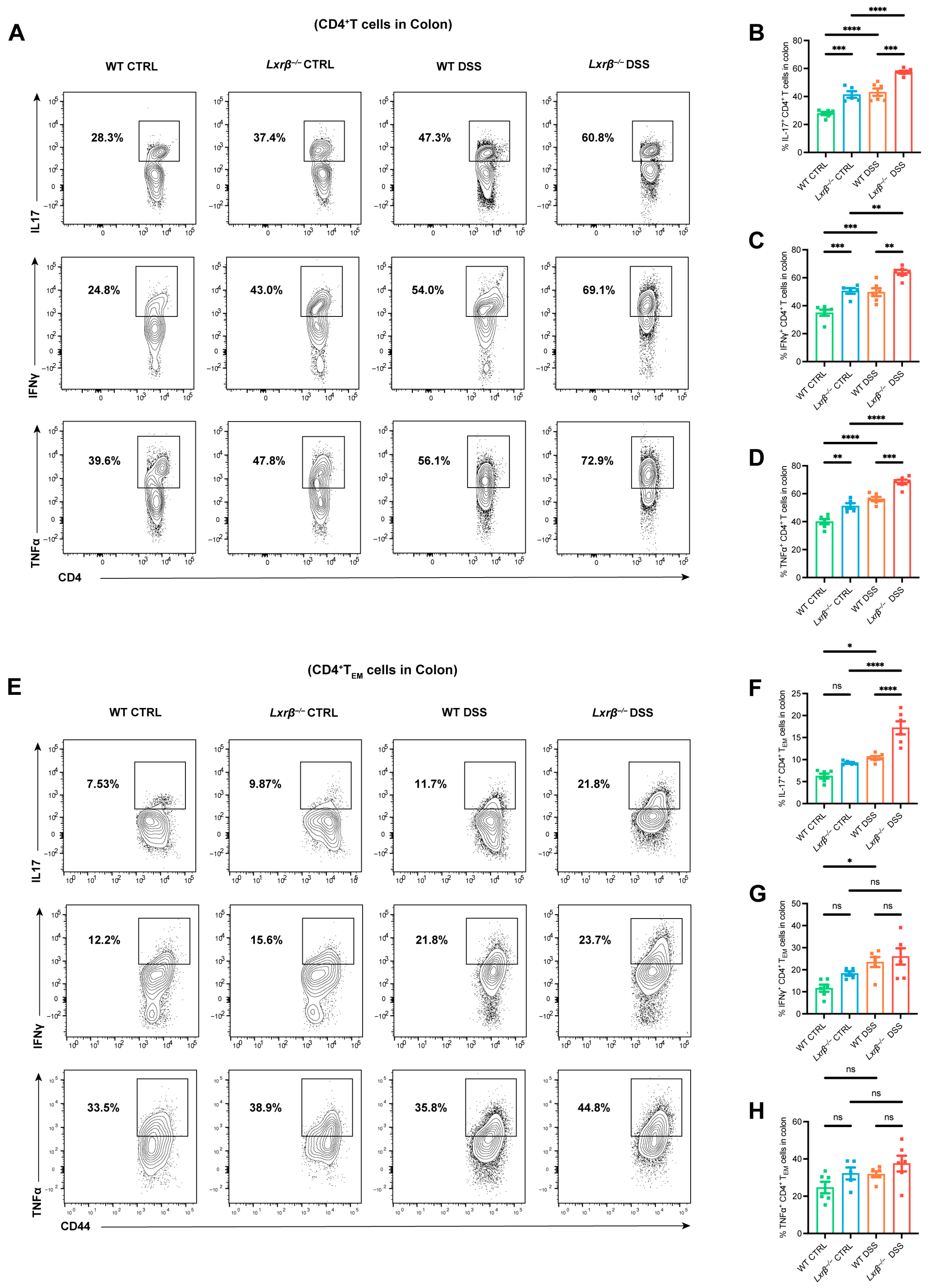 3.3. LXRβ Depletion Promotes CD4+ T Cell Production of Inflammatory Cytokines