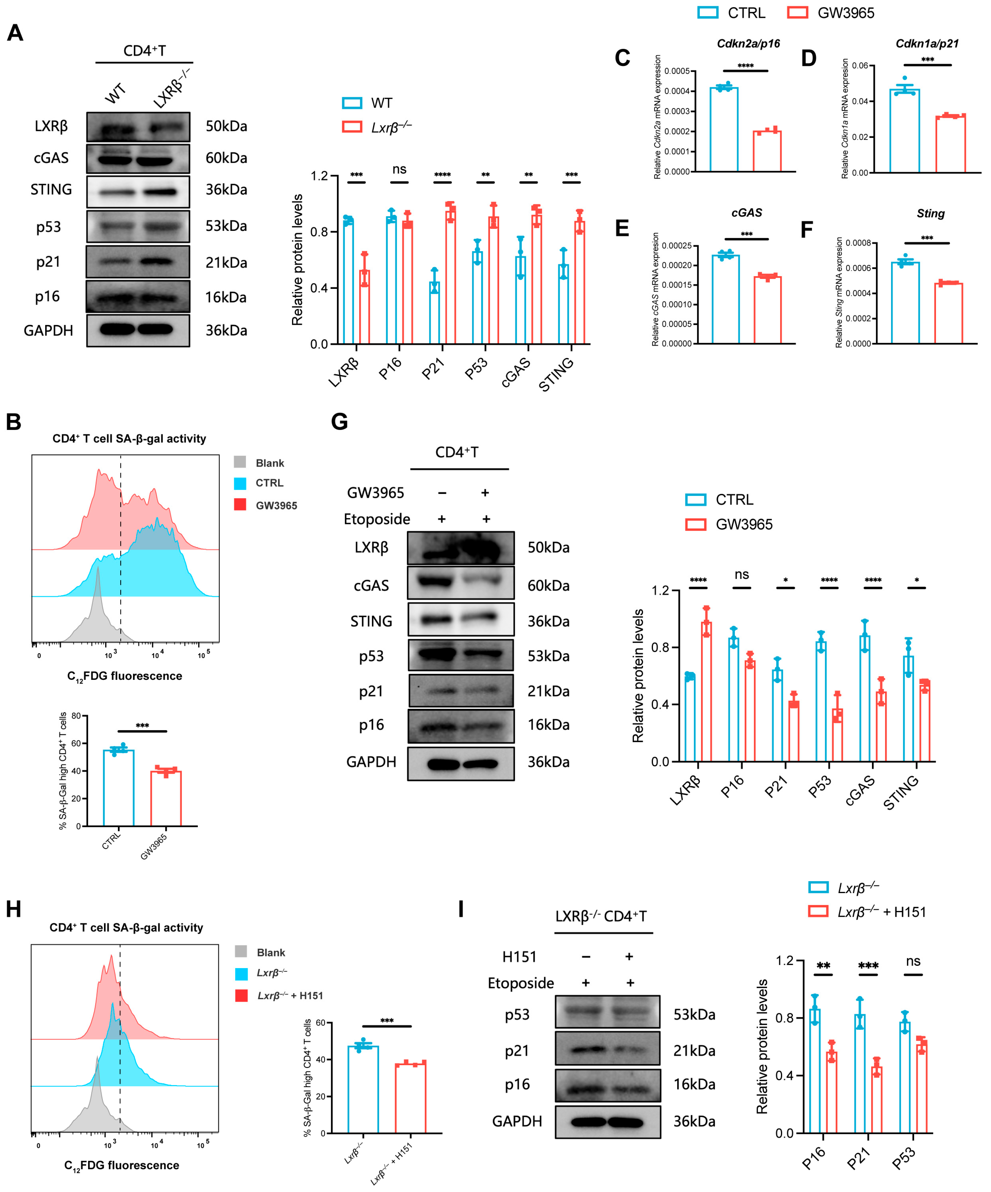 3.5. LXRβ Deficiency Upregulates cGAS/STING Signaling to Promote CD4+ T Cell Senescence