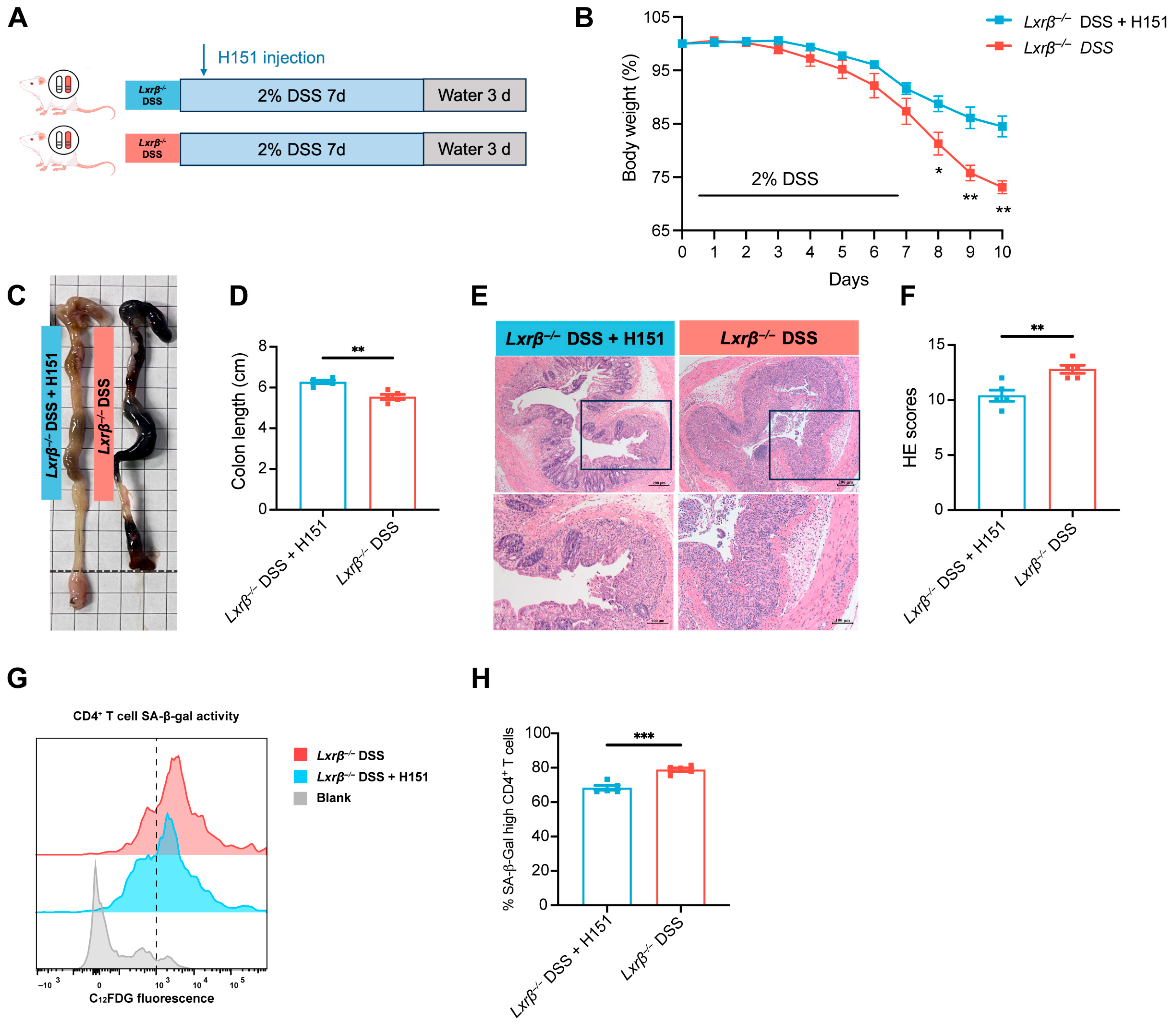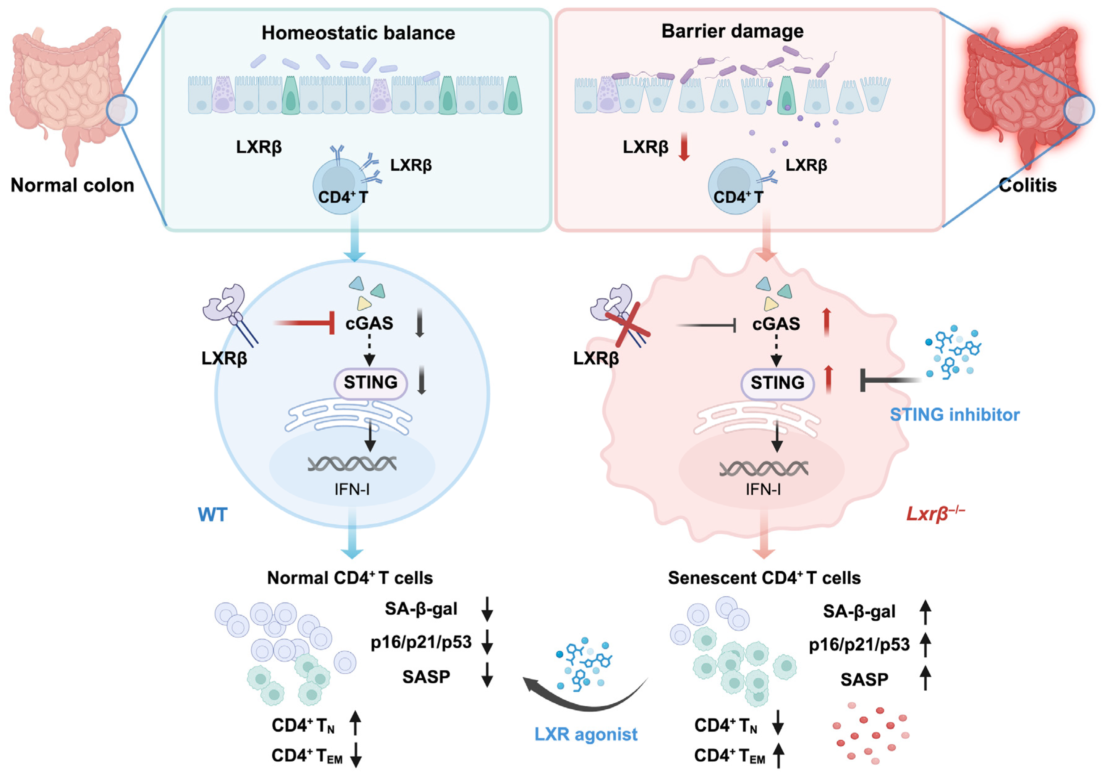 Chicago/Turabian StyleZhang, Yang, Yalan Xu, Peng You, Yulan Liu, and Jun Xu. 2026. "Loss of LXRβ Drives CD4+ T Cell Senescence and Exacerbates the Progression of Colitis" Biomedicines 14, no. 1: 152. https://doi.org/10.3390/biomedicines14010152