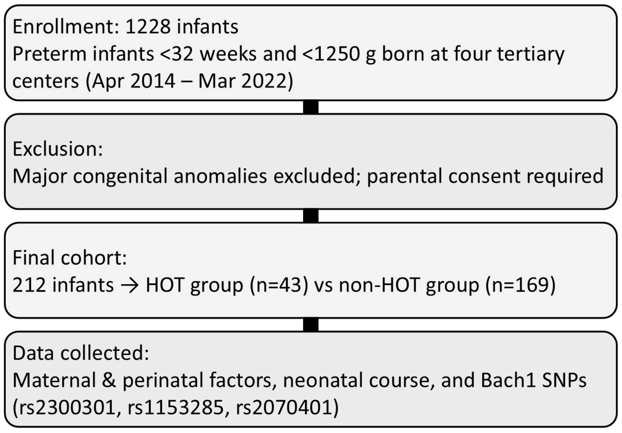 APA StyleSakuraba, S., Noguchi, A., Arai, H., Sasaki, A., Haga, M., Iwatani, A., Nishimura, E., Nagano, N., Suga, S., Araki, S., Konishi, A., Onouchi, Y., Ito, M., & Namba, F. (2026). Association of Bach1 Gene Polymorphisms with Susceptibility to Bronchopulmonary Dysplasia in Preterm Infants. Biomedicines, 14(1), 17. https://doi.org/10.3390/biomedicines14010017