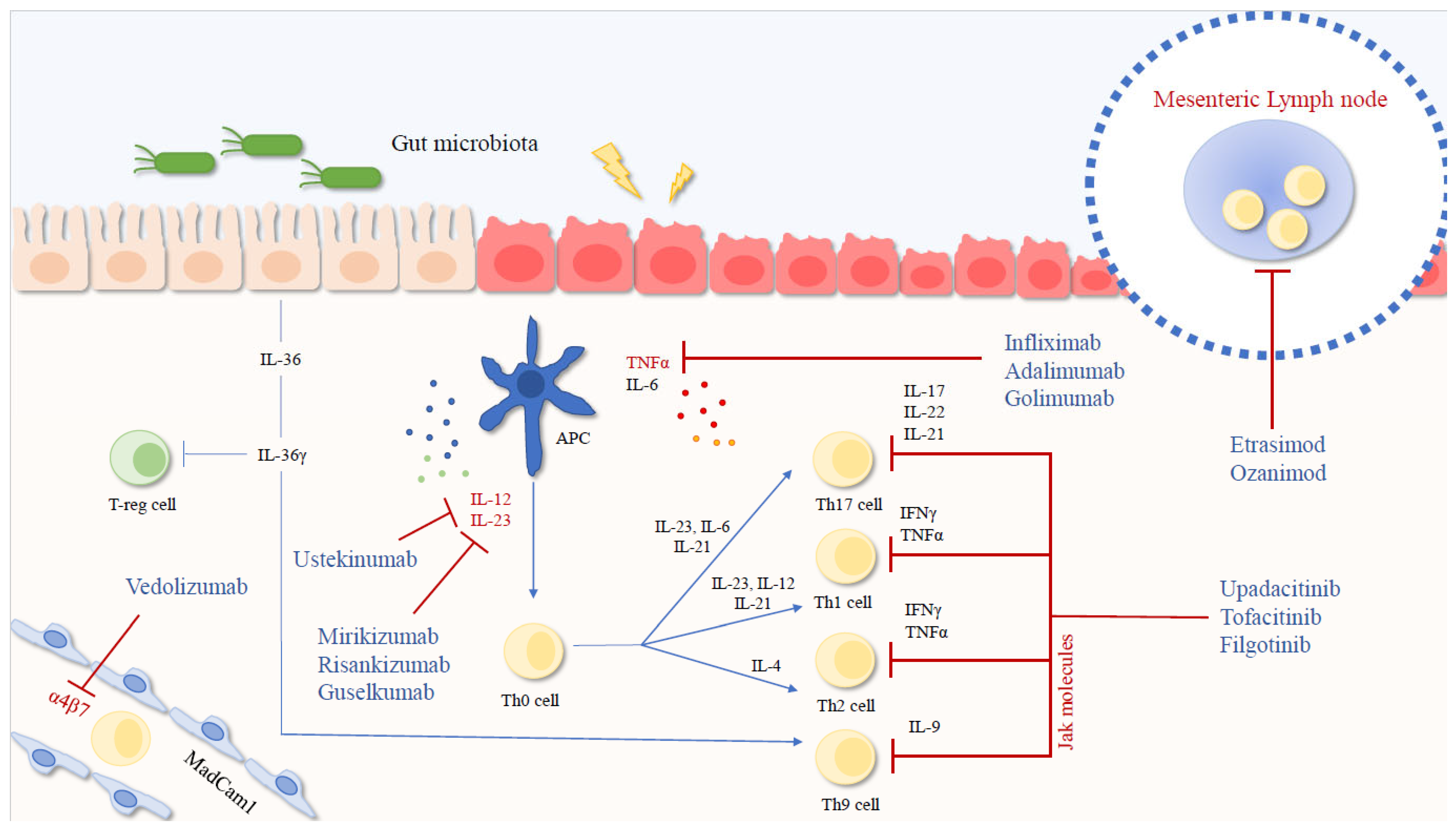 - Pallone, F.; Monteleone, G. Interleukin 12 and Th1 responses in inflammatory bowel disease. Gut 1998, 43, 735–736. [Google Scholar] [CrossRef] [PubMed]