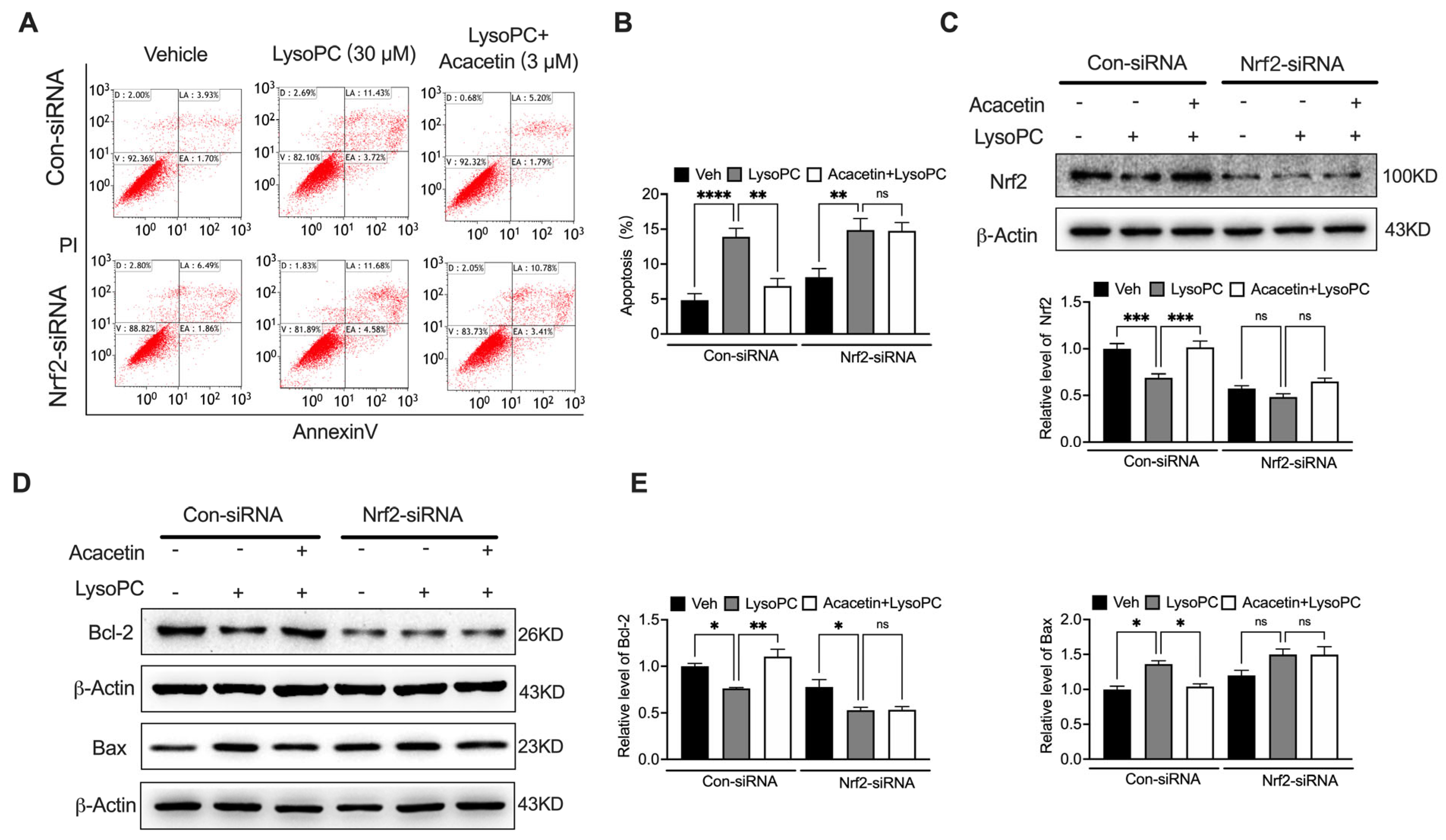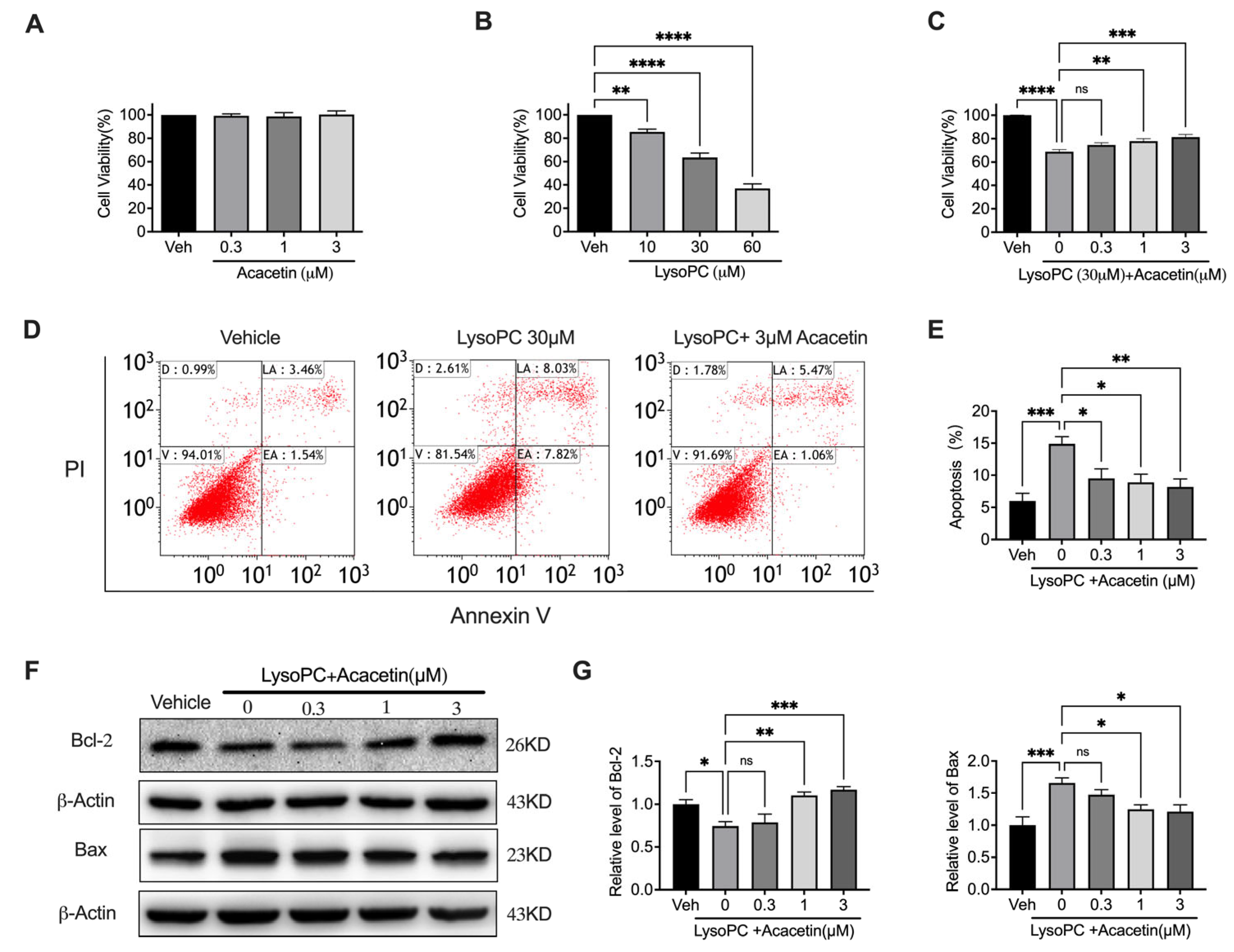 3.1. Acacetin Mitigates LysoPC-Induced VSMC Apoptosis Through Bcl-2/Bax Regulation