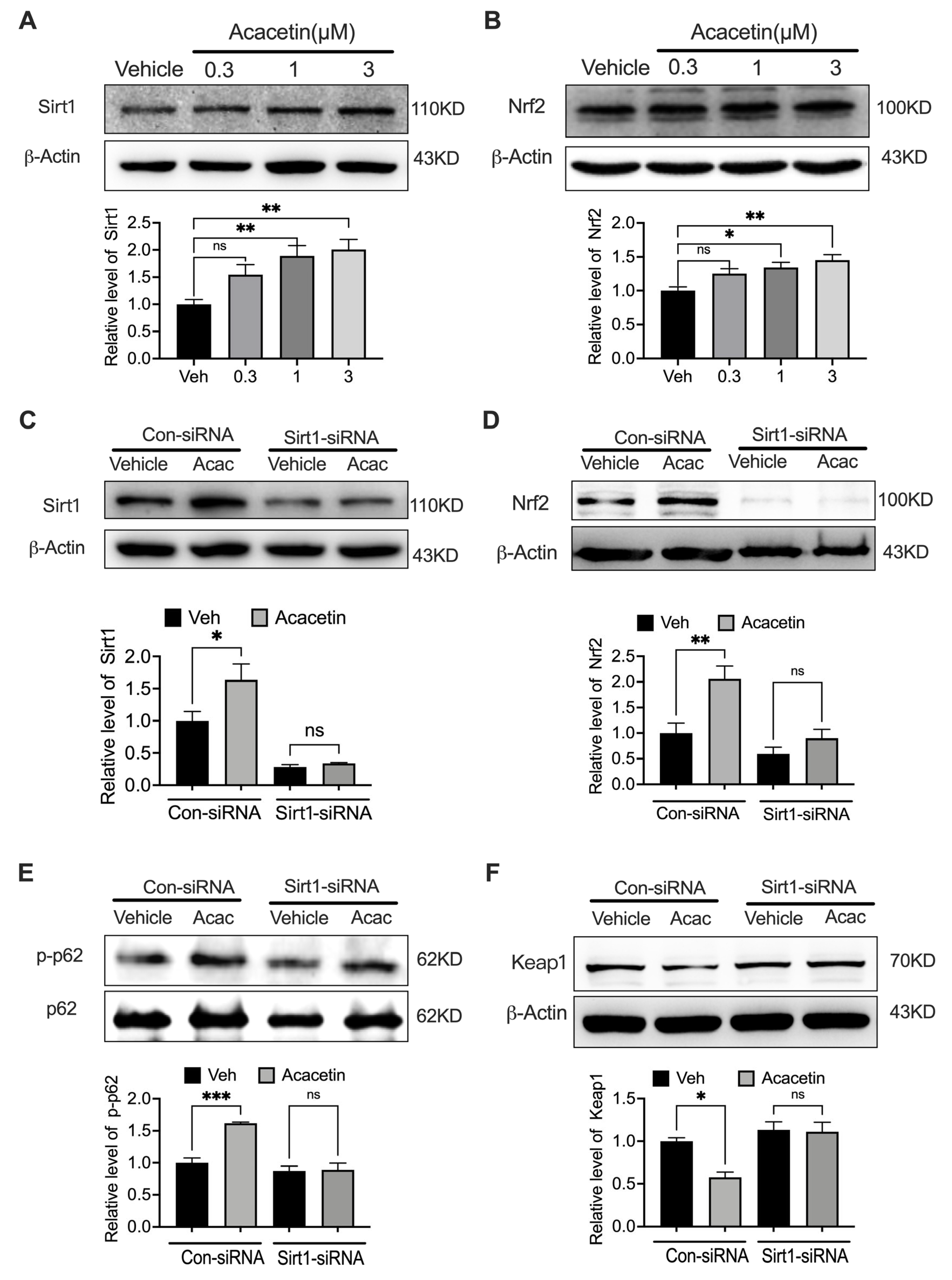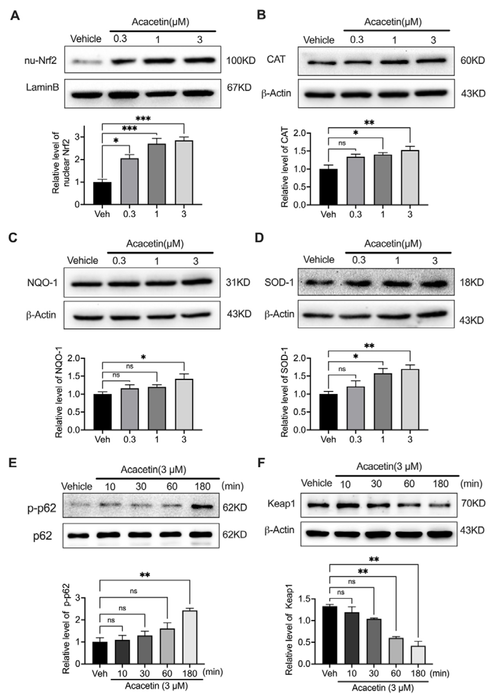 3.3. Acacetin Orchestrates Nrf2 Nuclear Translocation via p62/Keap1 Axis