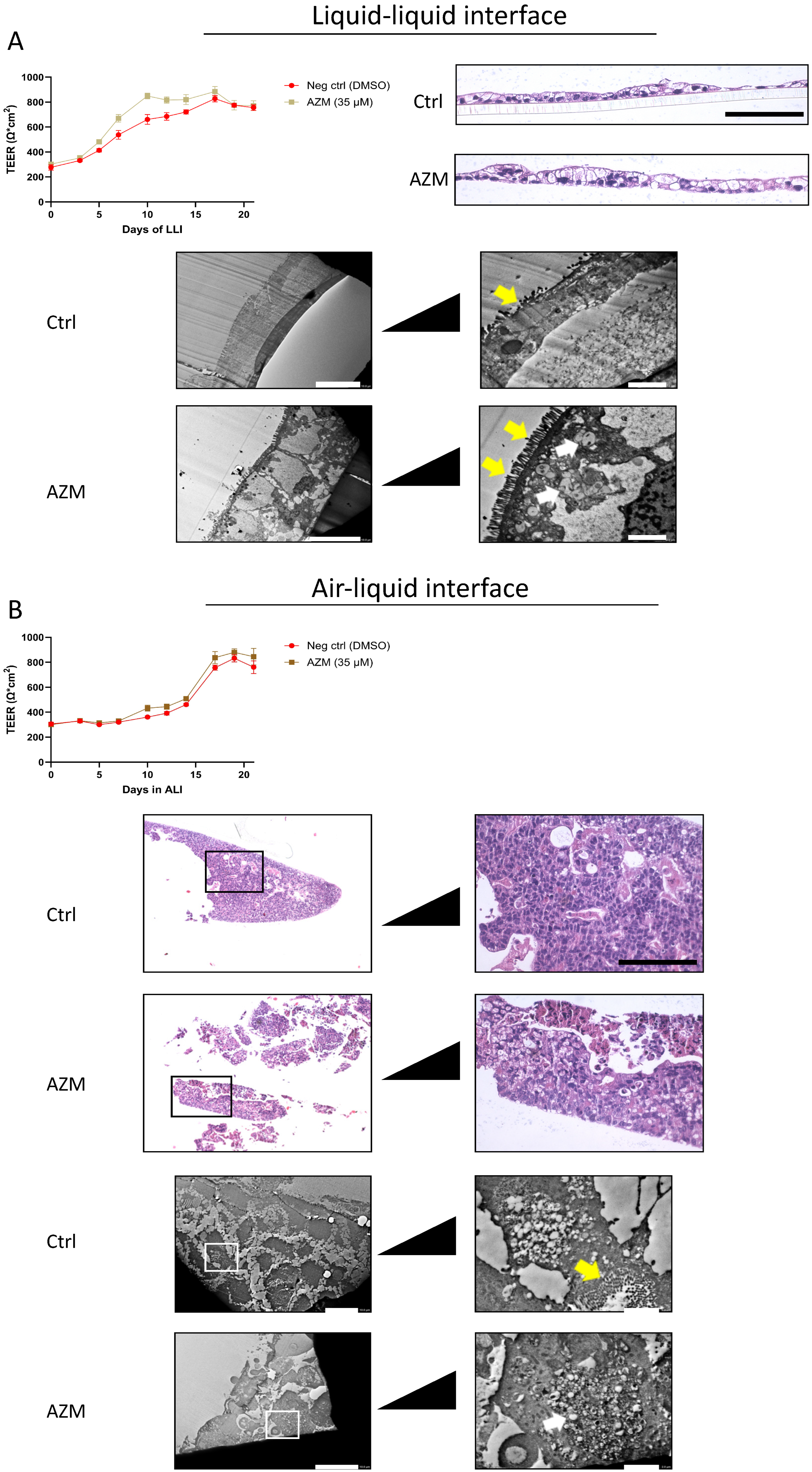 - Arason, A.J.; Joelsson, J.P.; Valdimarsdottir, B.; Sigurdsson, S.; Gudjonsson, A.; Halldorsson, S.; Johannsson, F.; Rolfsson, O.; Lehmann, F.; Ingthorsson, S.; et al. Azithromycin induces epidermal differentiation and multivesicular bodies in airway epithelia. Respir. Res. 2019, 20, 129. [Google Scholar] [CrossRef]