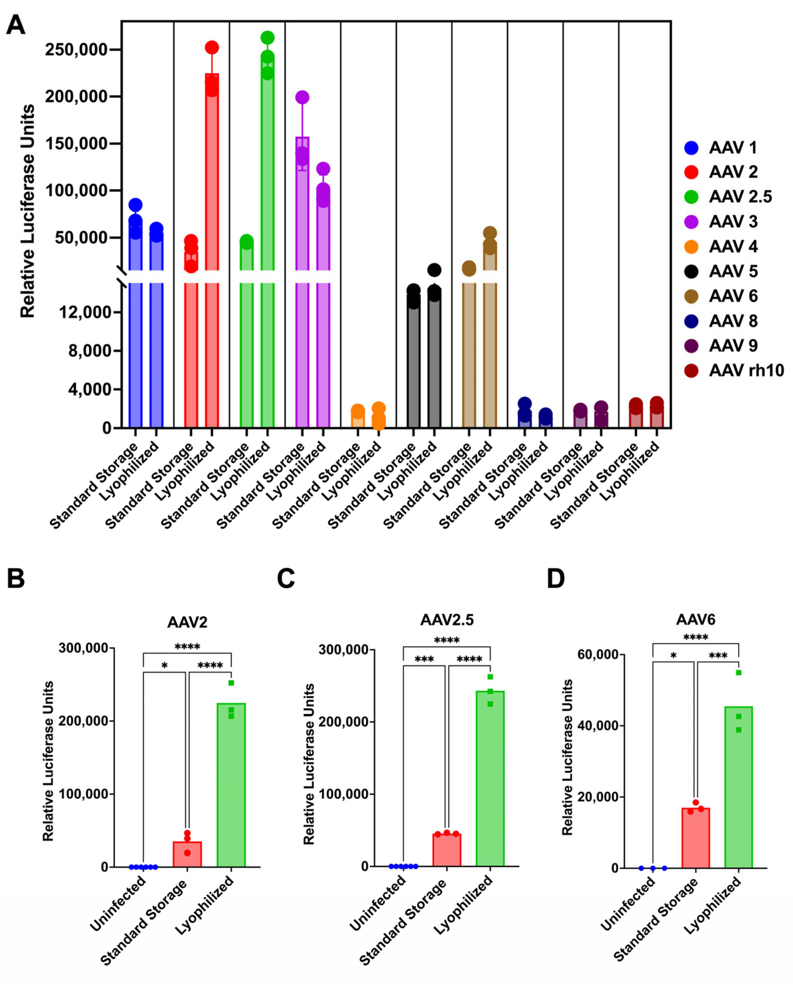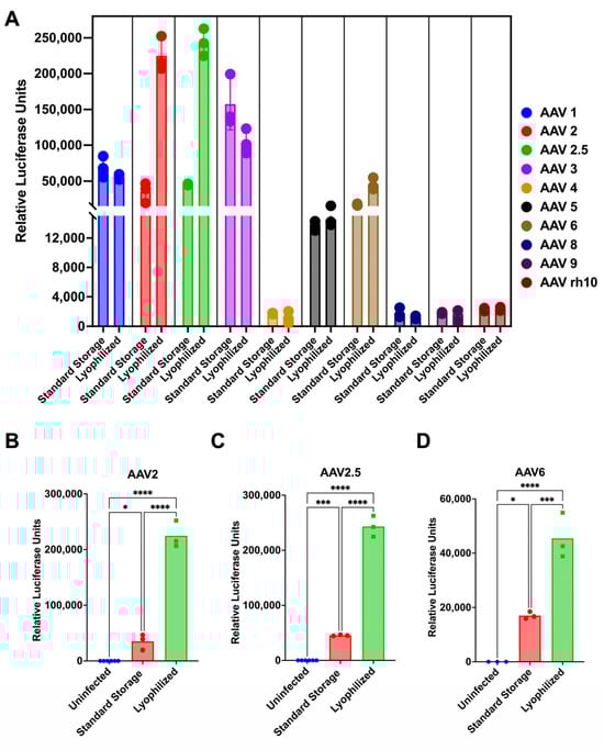 3.2. The Transduction Activity of a Subset of AAV Serotypes Increases After Lyophilization