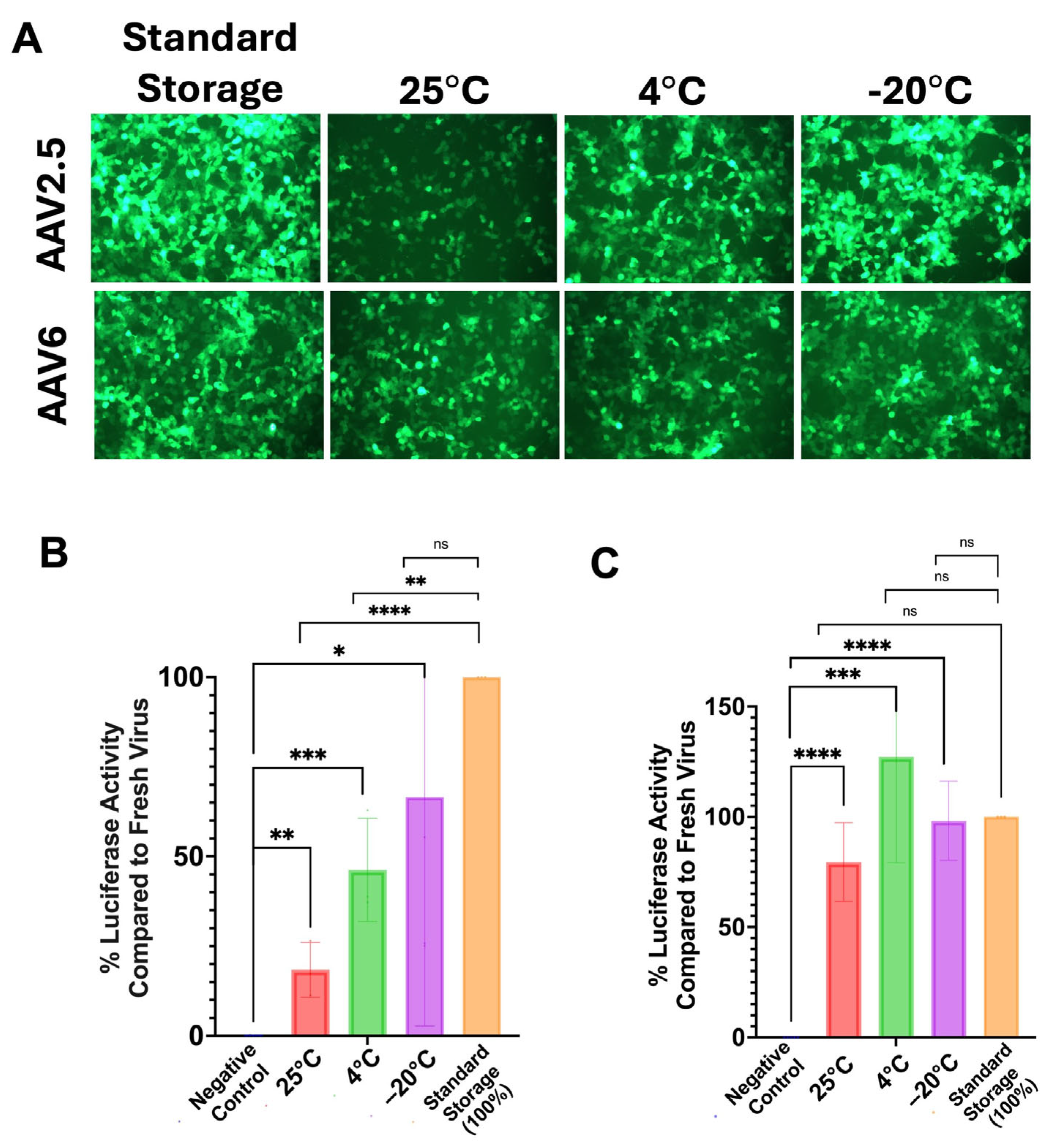 3.6. Stability of Lyophilized AAV2.5 and AAV6 at Room Temperature, 4 °C, and at −20 °C