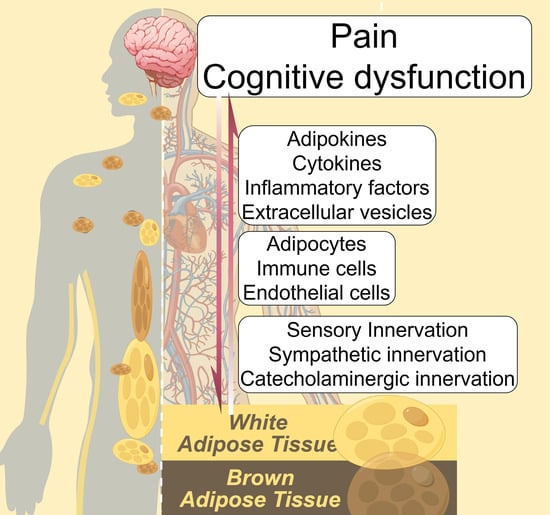 Chicago/Turabian StyleLi, Juan, Zhixiao Li, Kun Chen, Yanqiong Wu, Xuesong Yang, Zhigang He, and Hongbing Xiang. 2026. "Adipose Tissue and Central Nervous System Crosstalk: Roles in Pain and Cognitive Dysfunction" Biomedicines 14, no. 1: 54. https://doi.org/10.3390/biomedicines14010054
