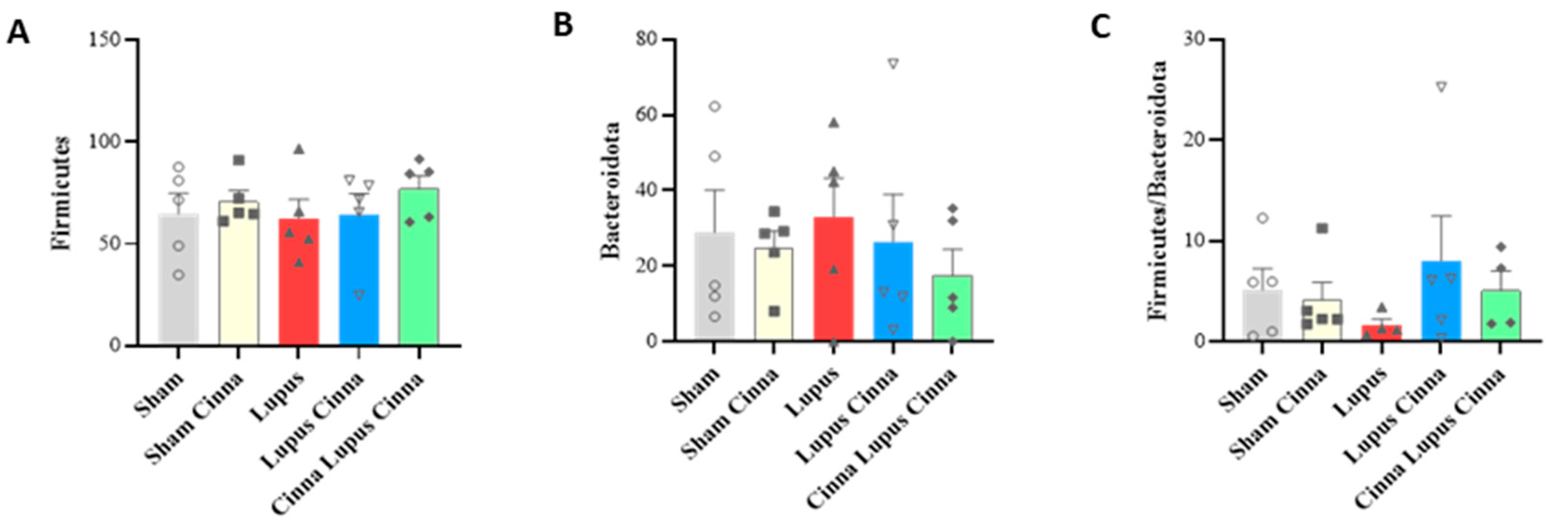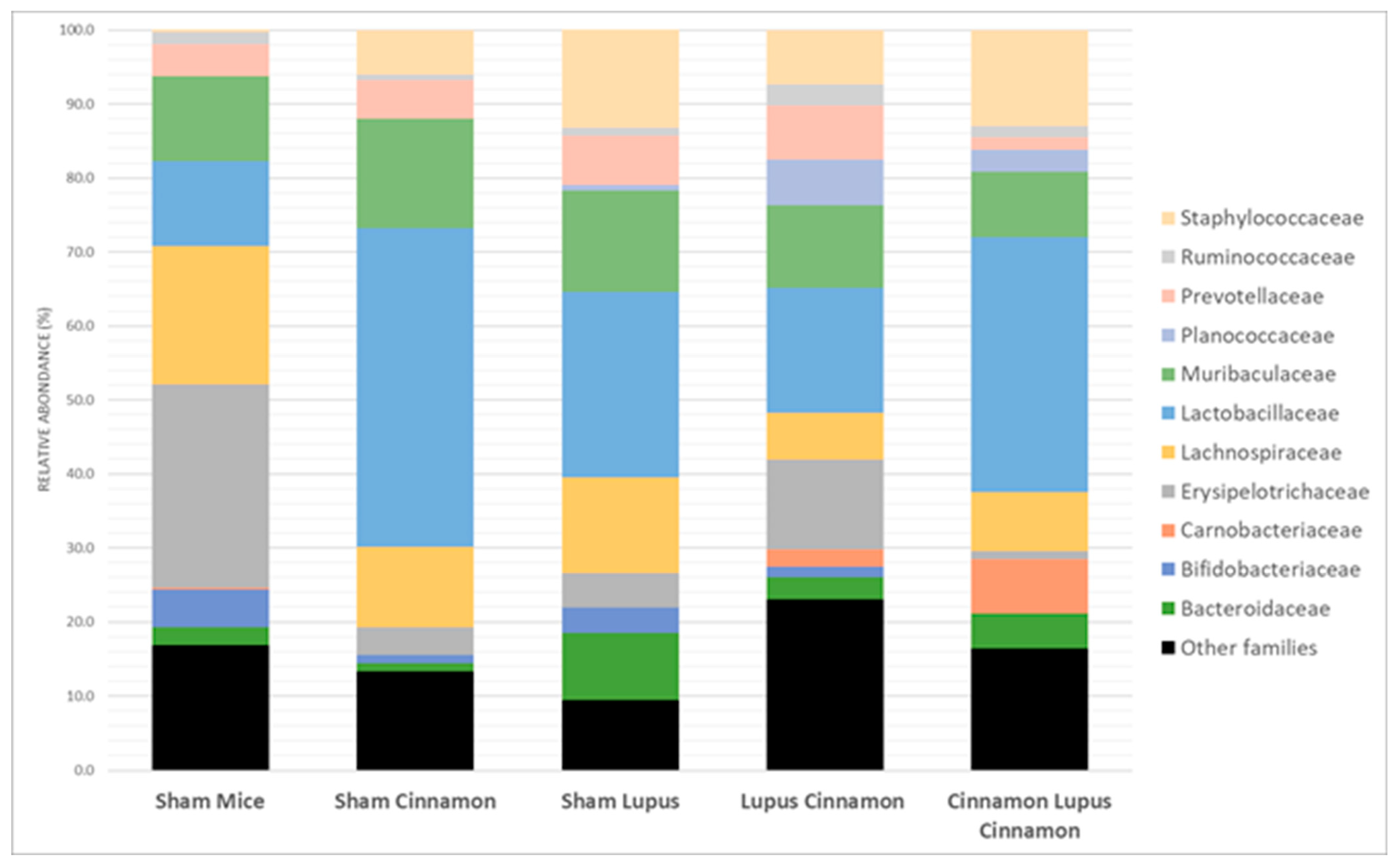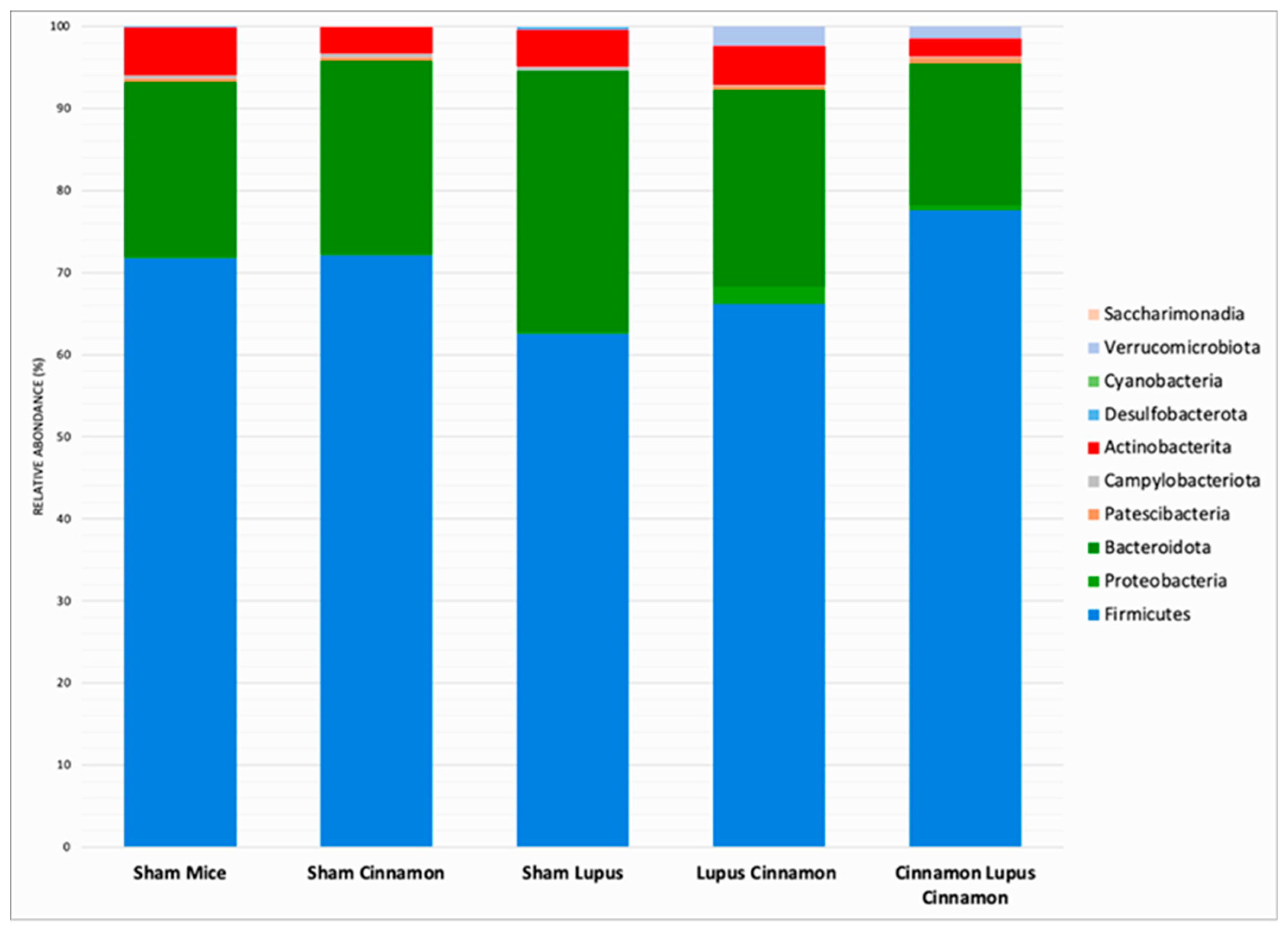 3.3. Effect of Lupus and Cinnamon on Microbial Communities