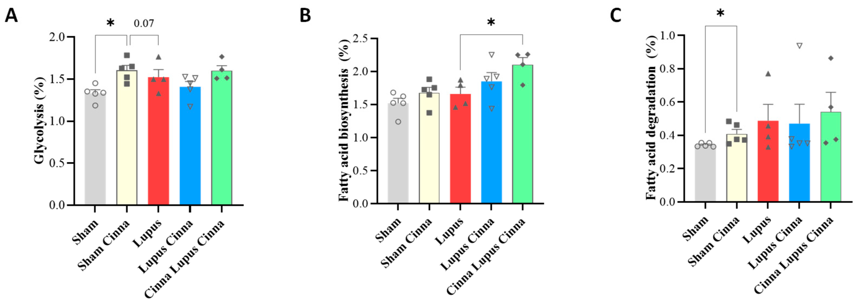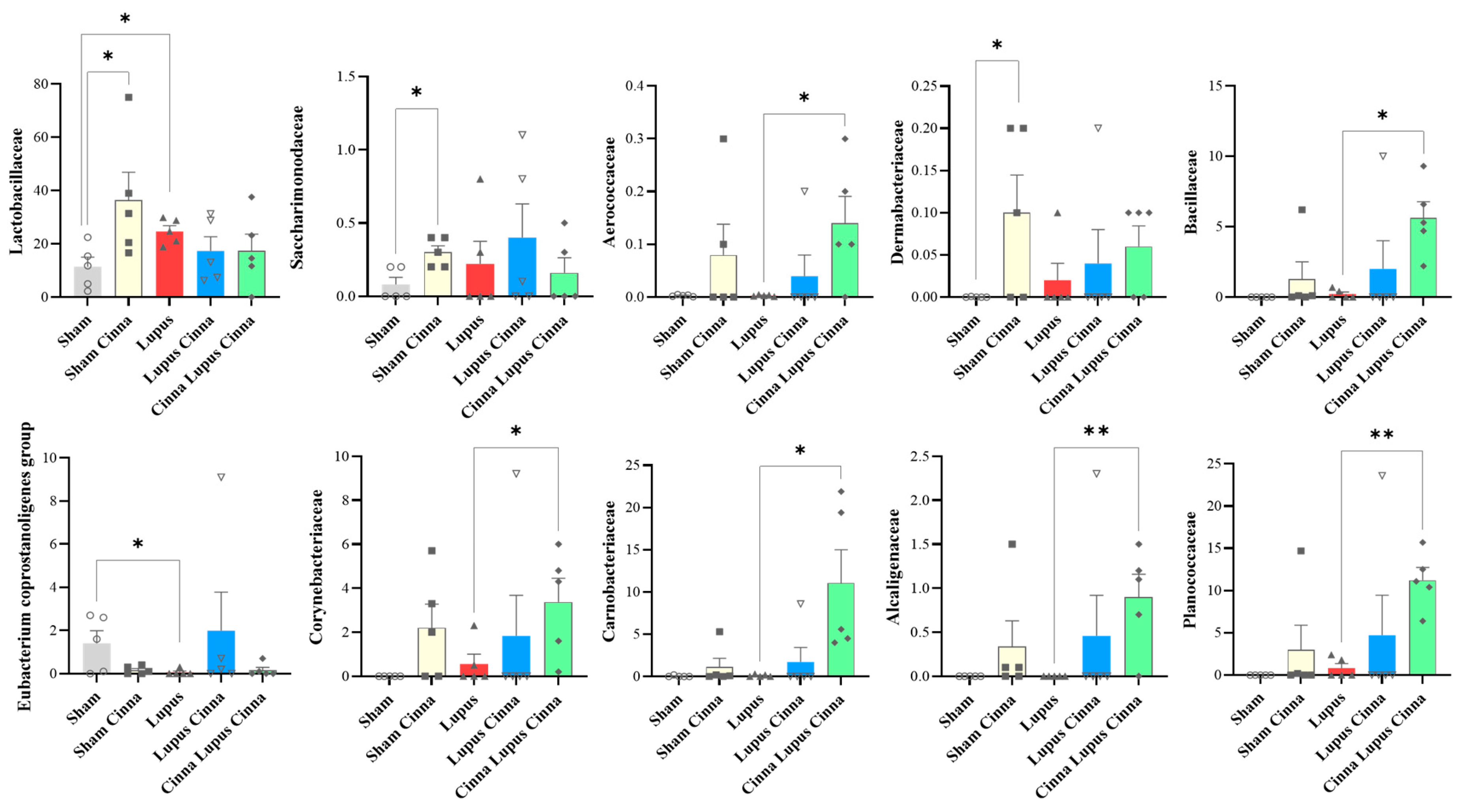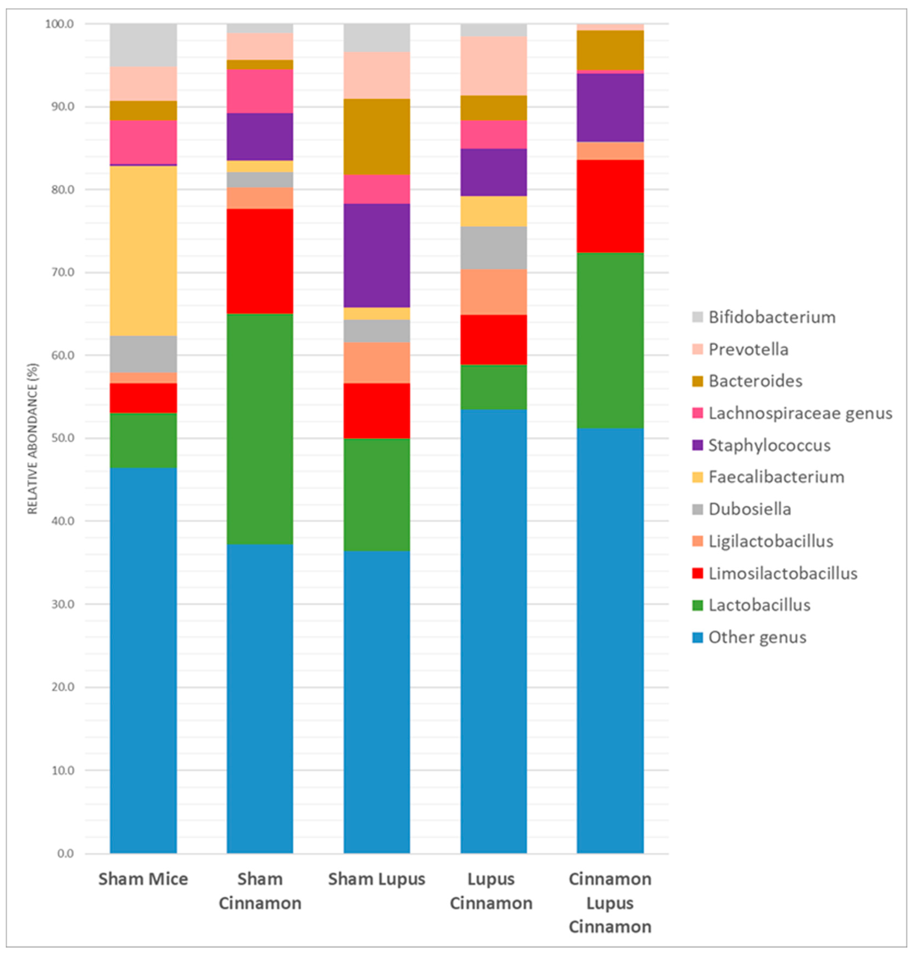 3.3. Effect of Lupus and Cinnamon on Microbial Communities