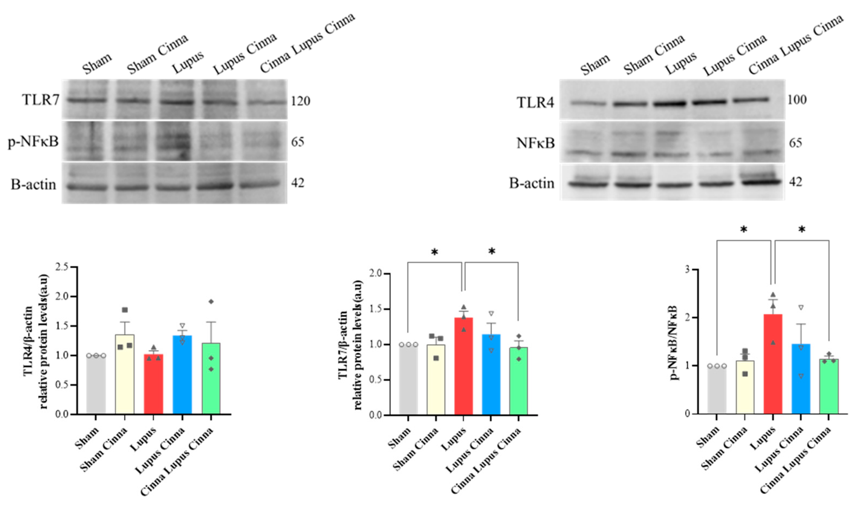 - Maalouly, G.; Saliba, Y.; Hajal, J.; Zein-El-Din, A.; Fakhoury, L.; Najem, R.; Smayra, V.; Nassereddine, H.; Fares, N. Cinnamomum cassia Alleviates Neuropsychiatric Lupus in a Murine Experimental Model. Nutrients 2025, 17, 1820. [Google Scholar] [CrossRef]