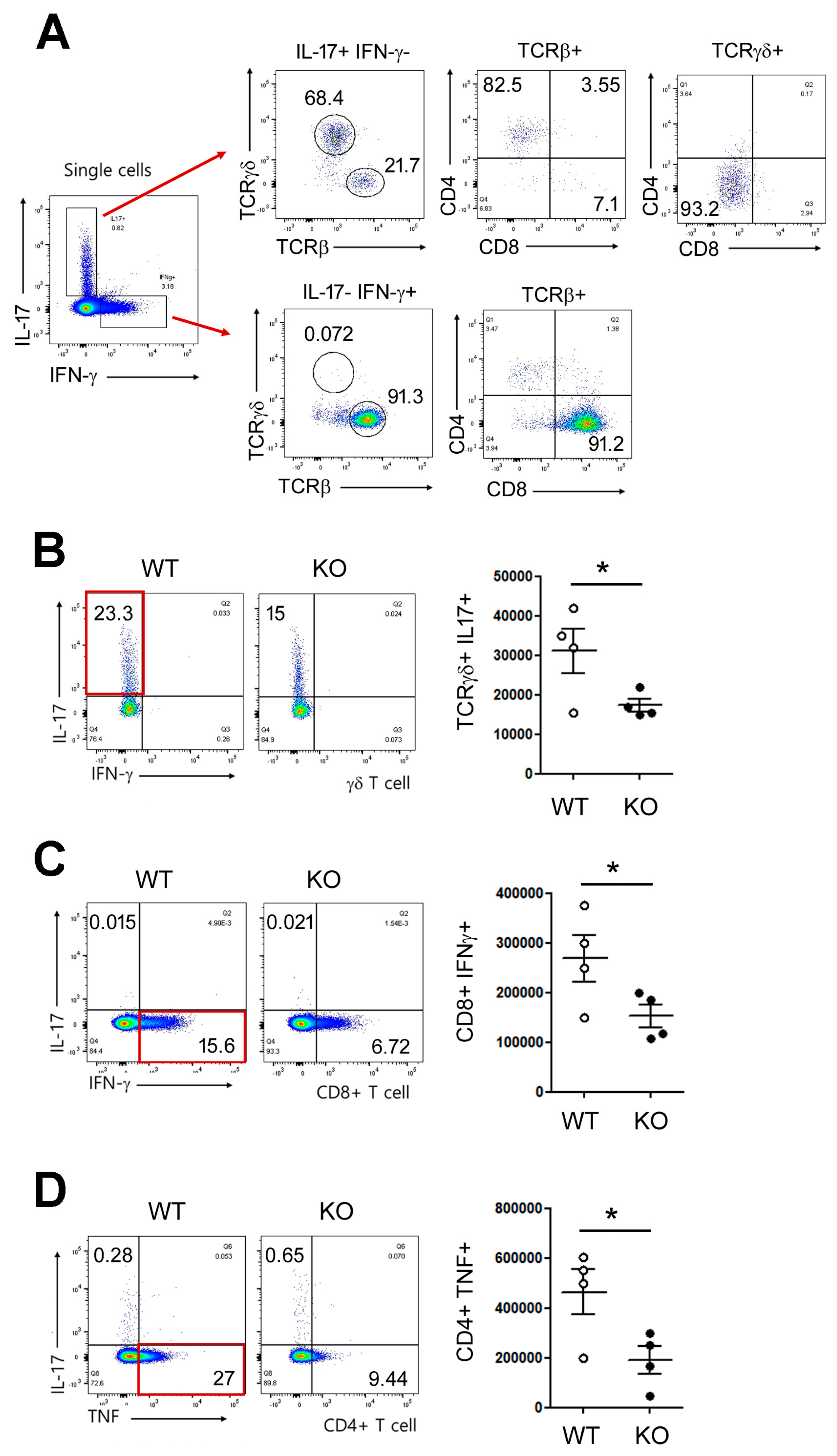 3.3. Keratinocyte HIF-1α Deficiency Reduces IL-17-Producing T Cells