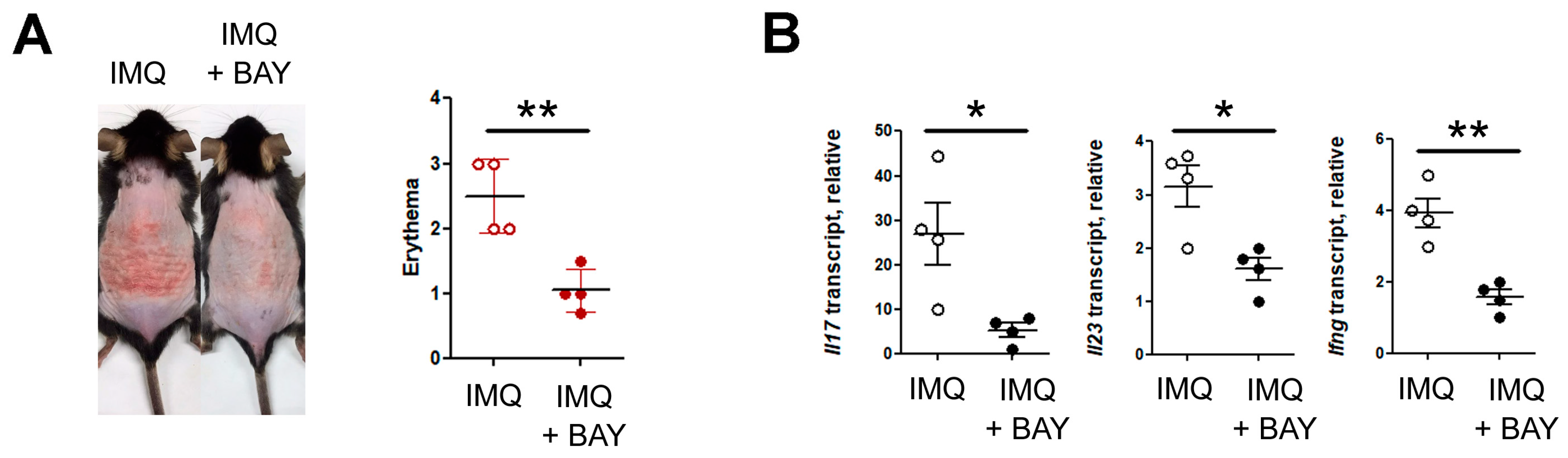 3.4. HIF Inhibitor Treatment Ameliorates IMQ-Induced Skin Inflammation