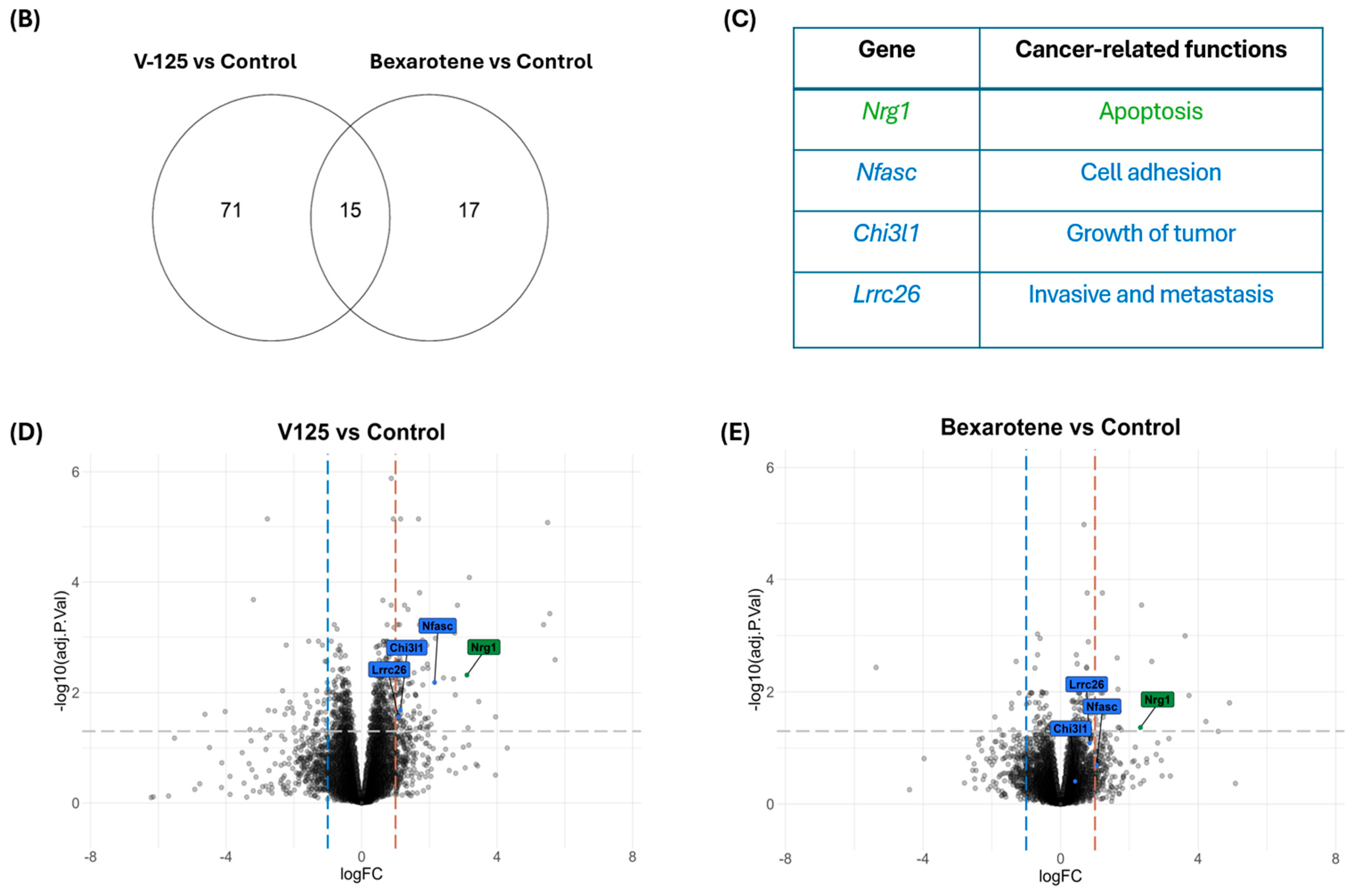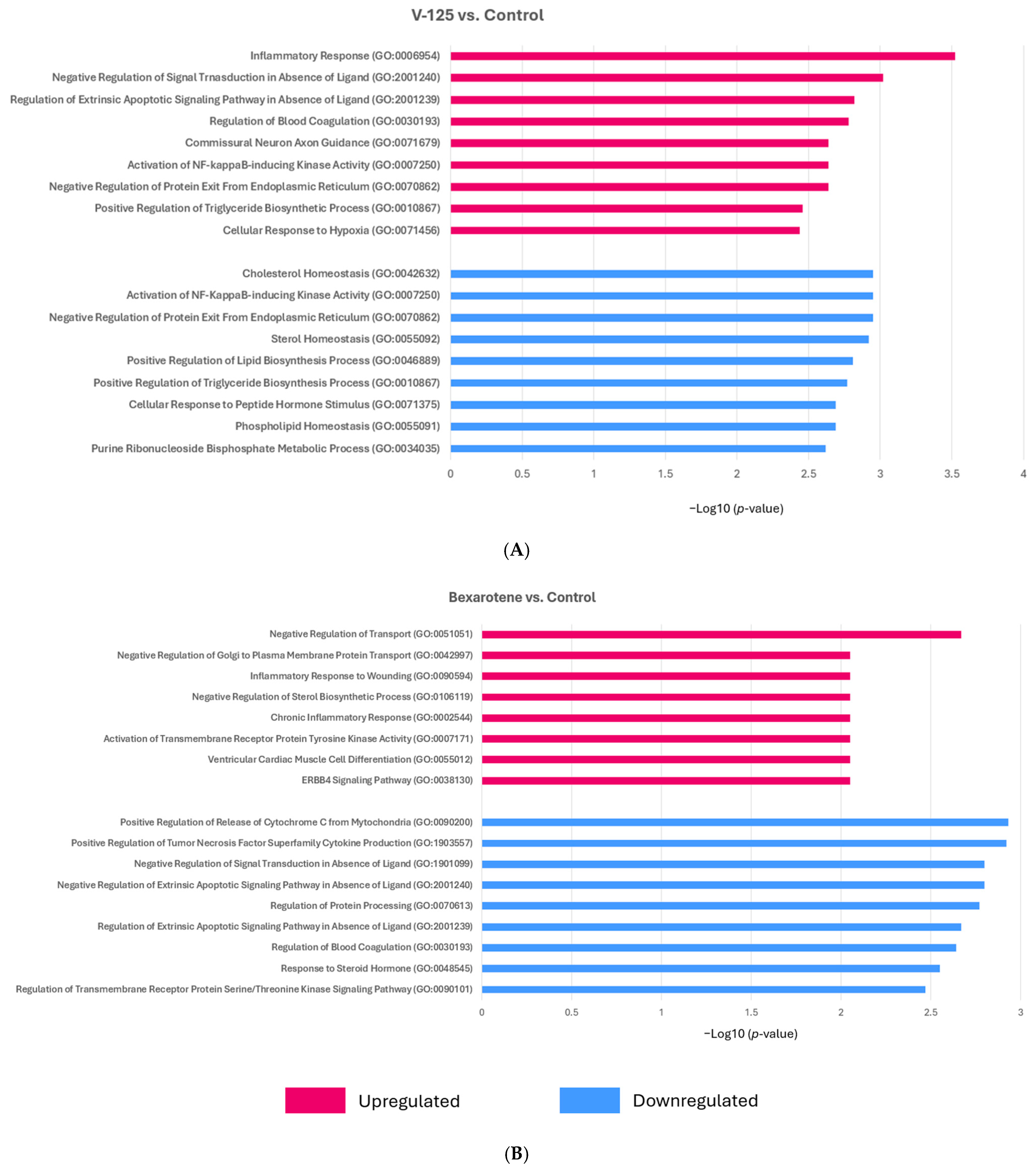 3.1. V-125 and Bexarotene Regulate Overlapping and Distinct Cancer-Associated Gene Sets