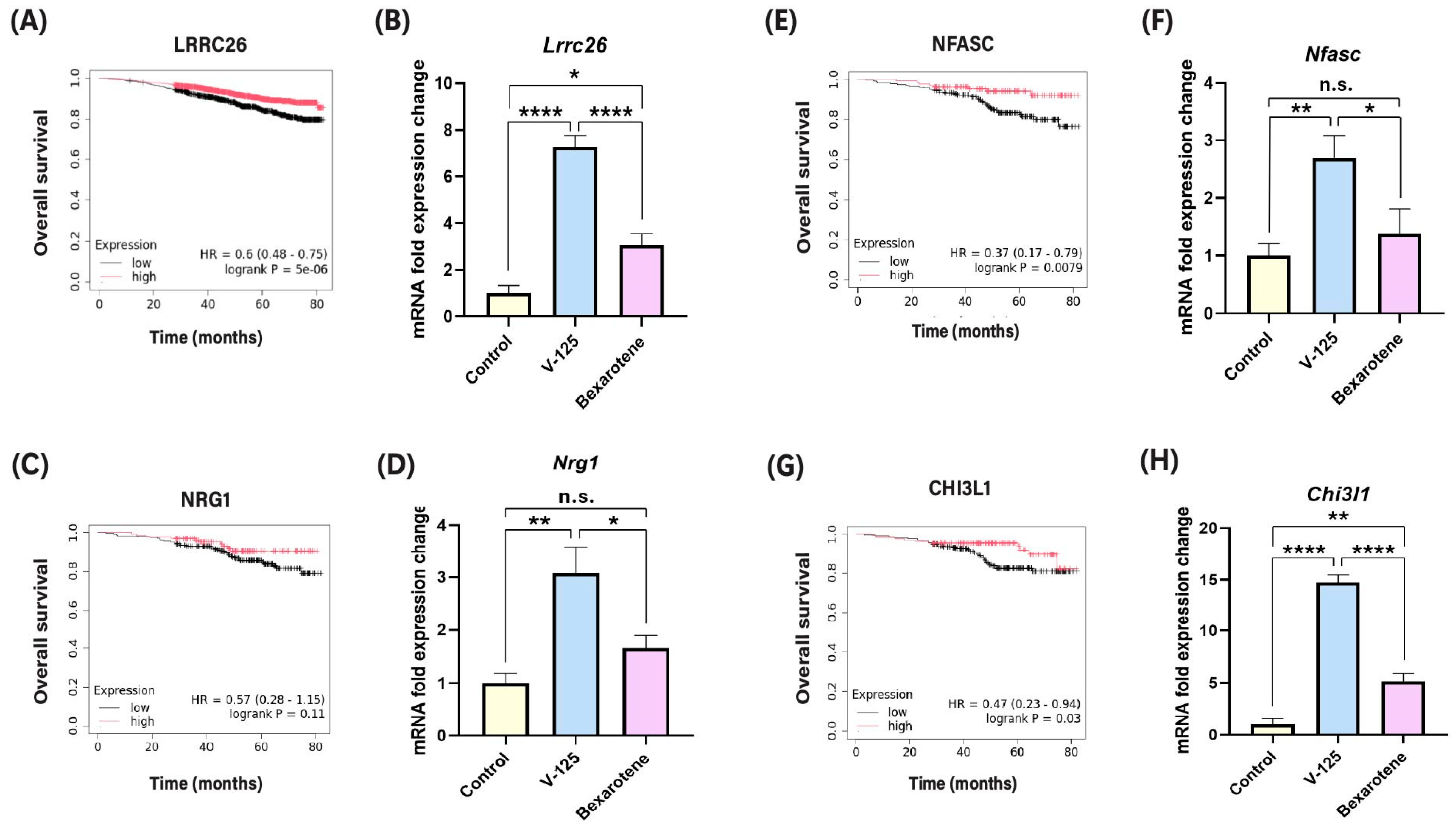 3.2. V-125 Upregulates Genes Associated with Improved Patient Survival