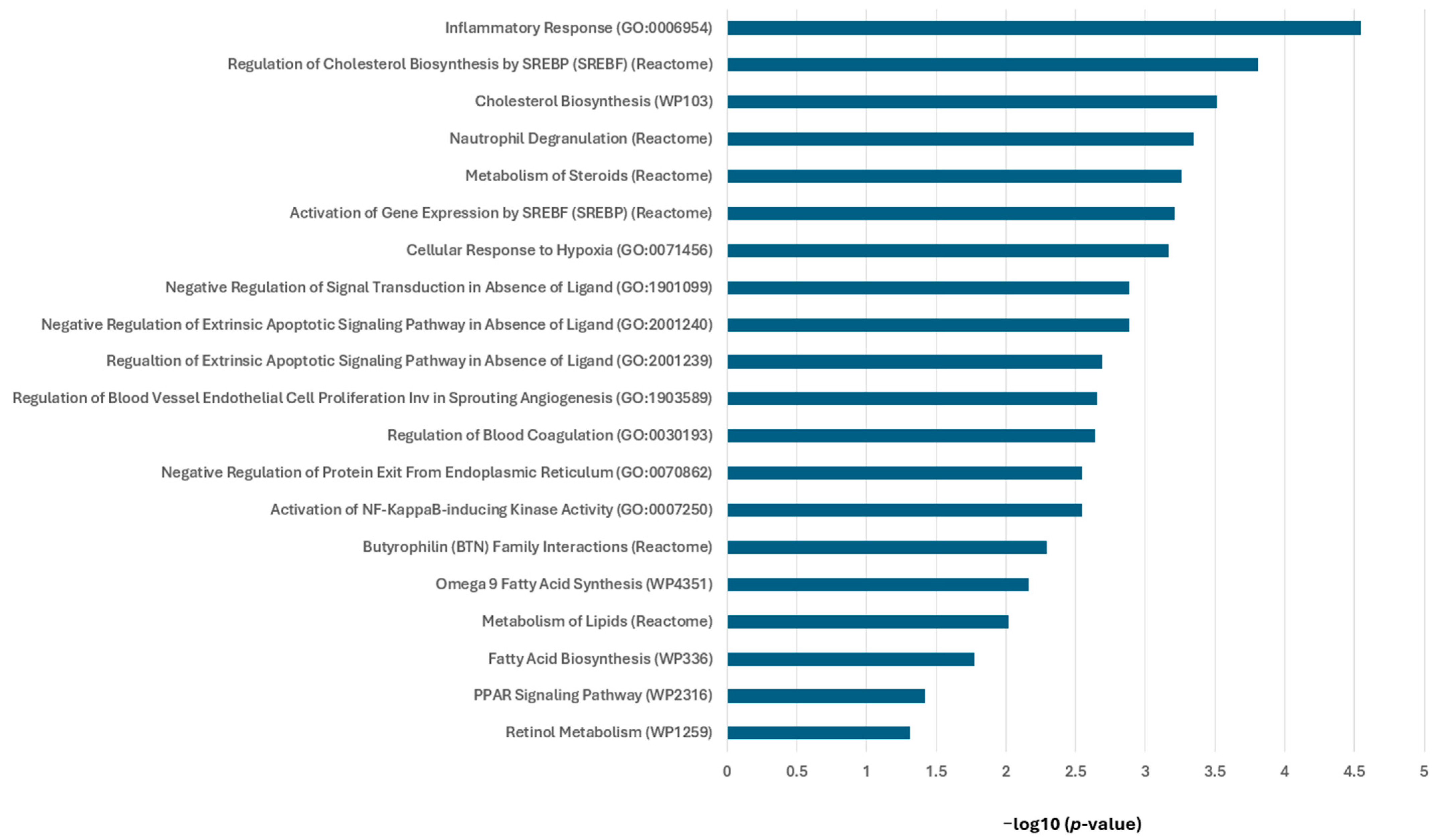 - Agrawal, A.; Balcı, H.; Hanspers, K.; Coort, S.L.; Martens, M.; Slenter, D.N.; Ehrhart, F.; Digles, D.; Waagmeester, A.; Wassink, I.; et al. WikiPathways 2024: Next generation pathway database. Nucleic Acids Res. 2023, 52, D679–D689. [Google Scholar] [CrossRef] [PubMed]