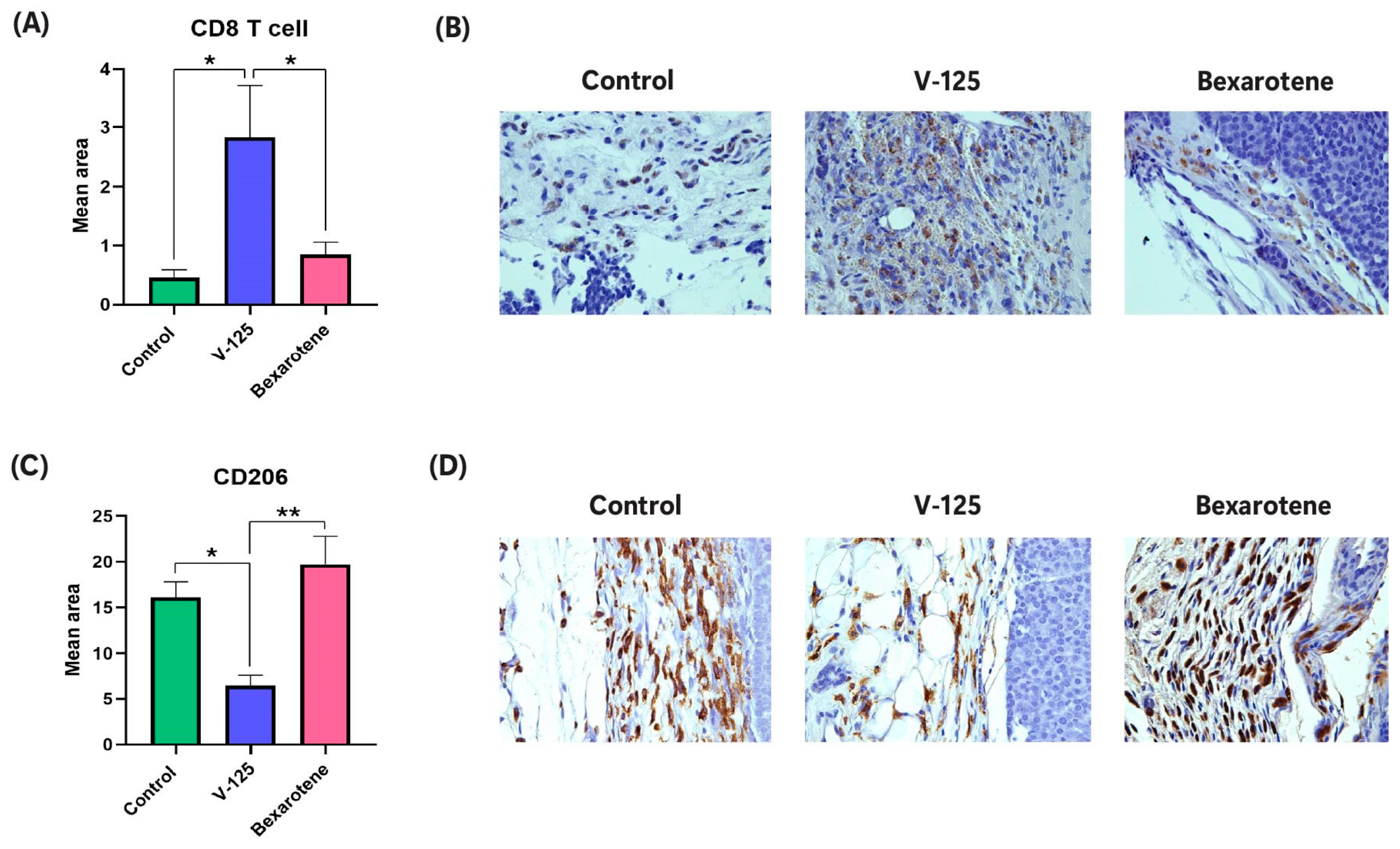 3.6. V-125 Promotes an Anti-Tumor Immune Microenvironment