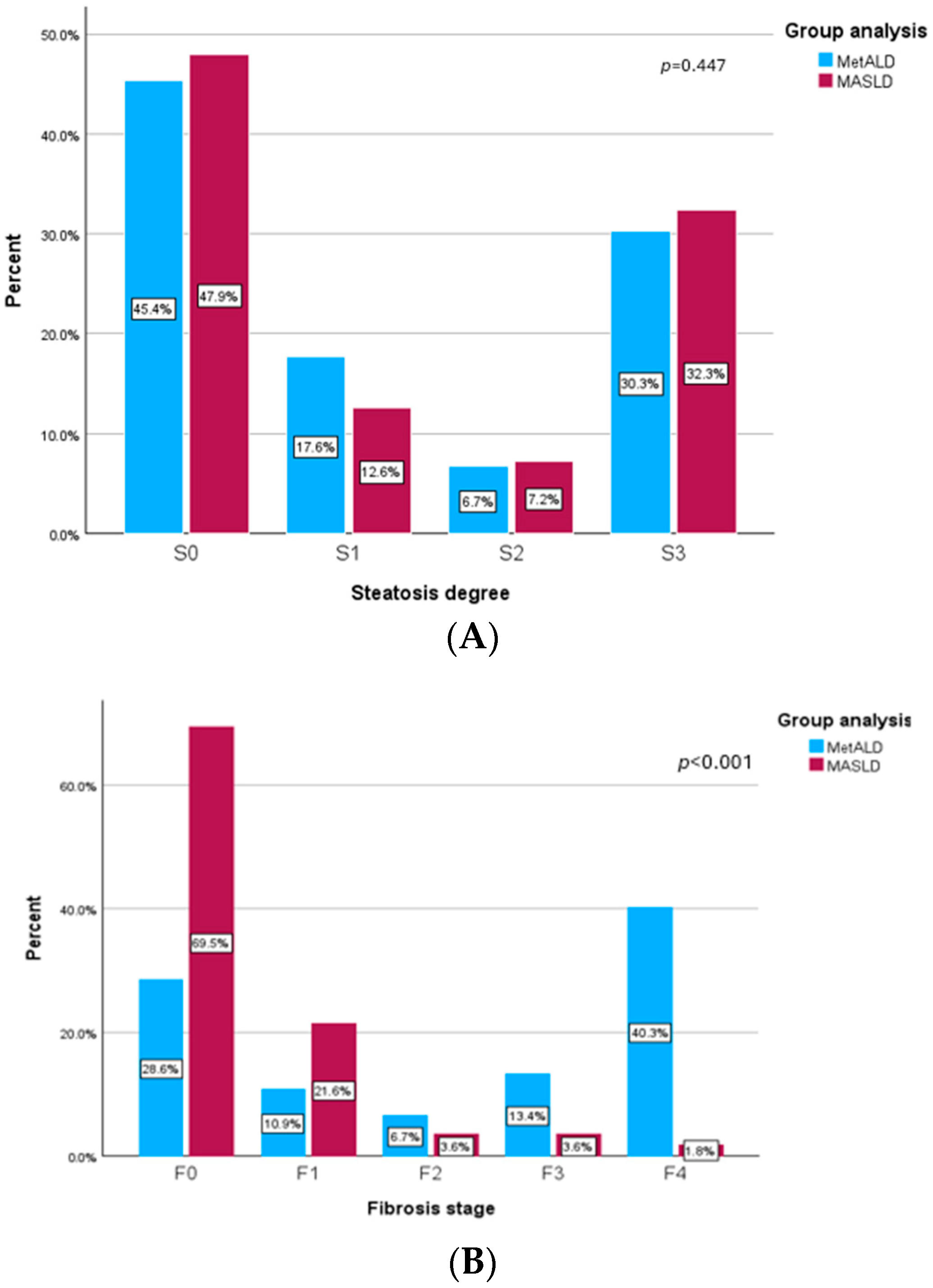 3.2. Differences Between MASLD and MetALD Groups for Liver Steatosis and Fibrosis