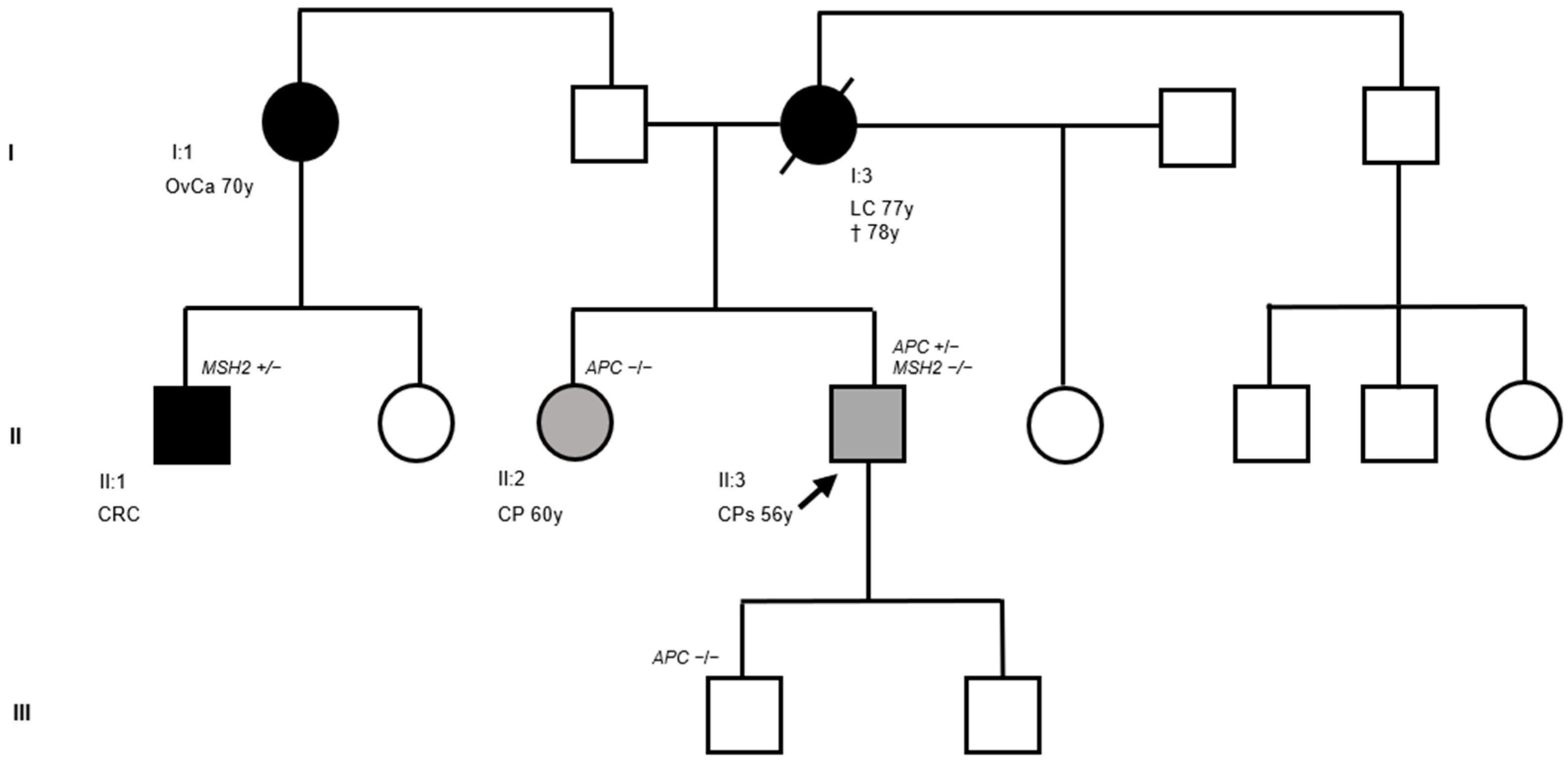 - Goosenberg, E.; Kaur, A.; Babiker, H.M. A Review of Hereditary Colorectal Cancers. In StatPearls; StatPearls Publishing: Treasure Island, FL, USA, 2025. [Google Scholar]
