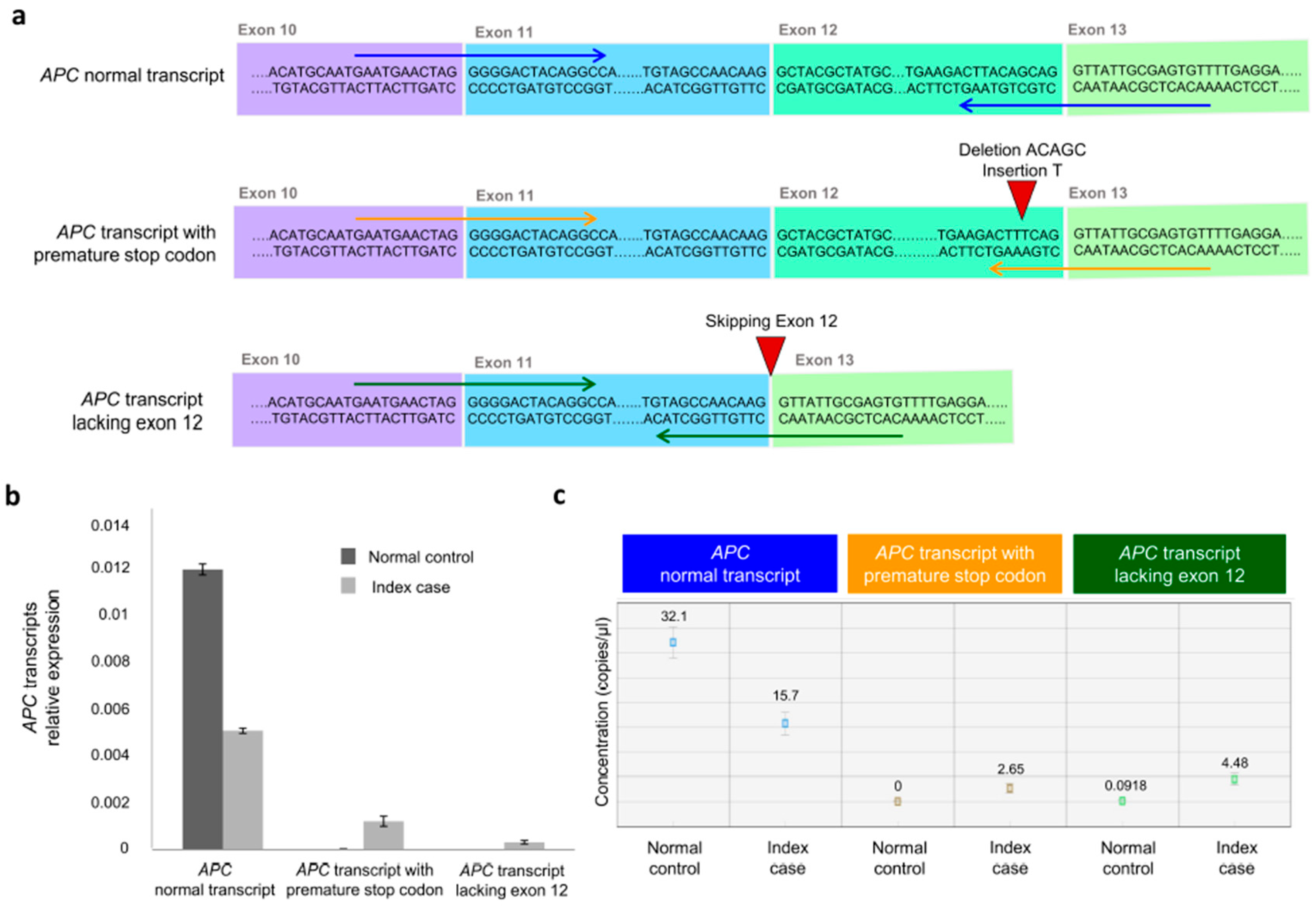3.3. Molecular Effects of the APC Gene Variant (NM_000038.6: c.1620_1624delinsT)