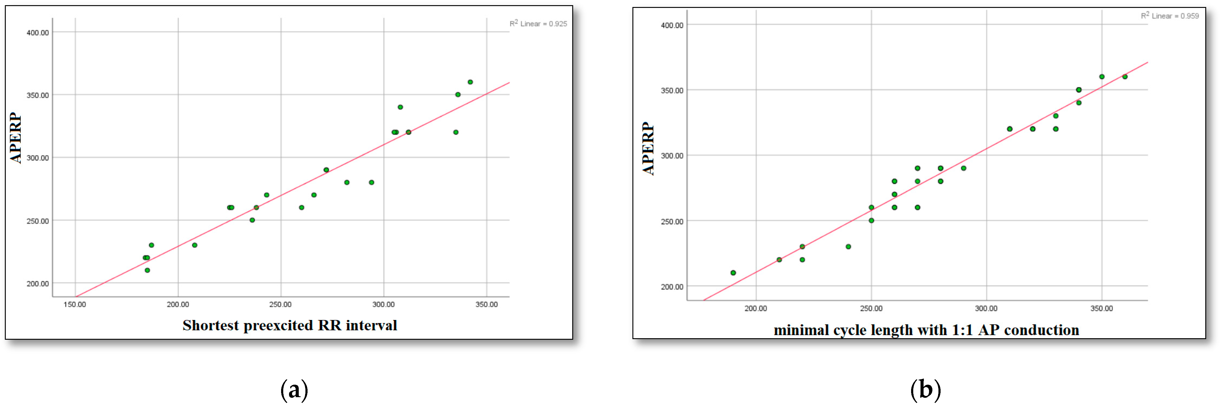 p < 0.001) correlation (r = 0.96) was also found between the APERP and the shortest 1:1 conduction over the accessory pathway (
