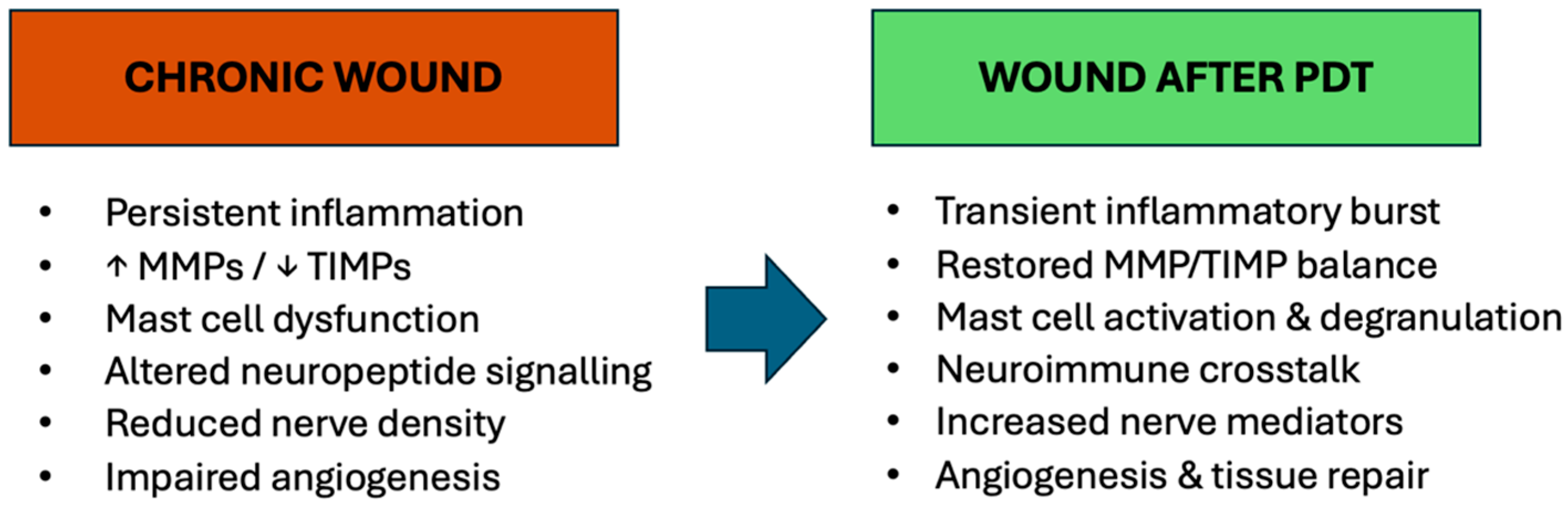 8.3. Neuroimmunomodulatory Effects of PDT in Chronic Wounds