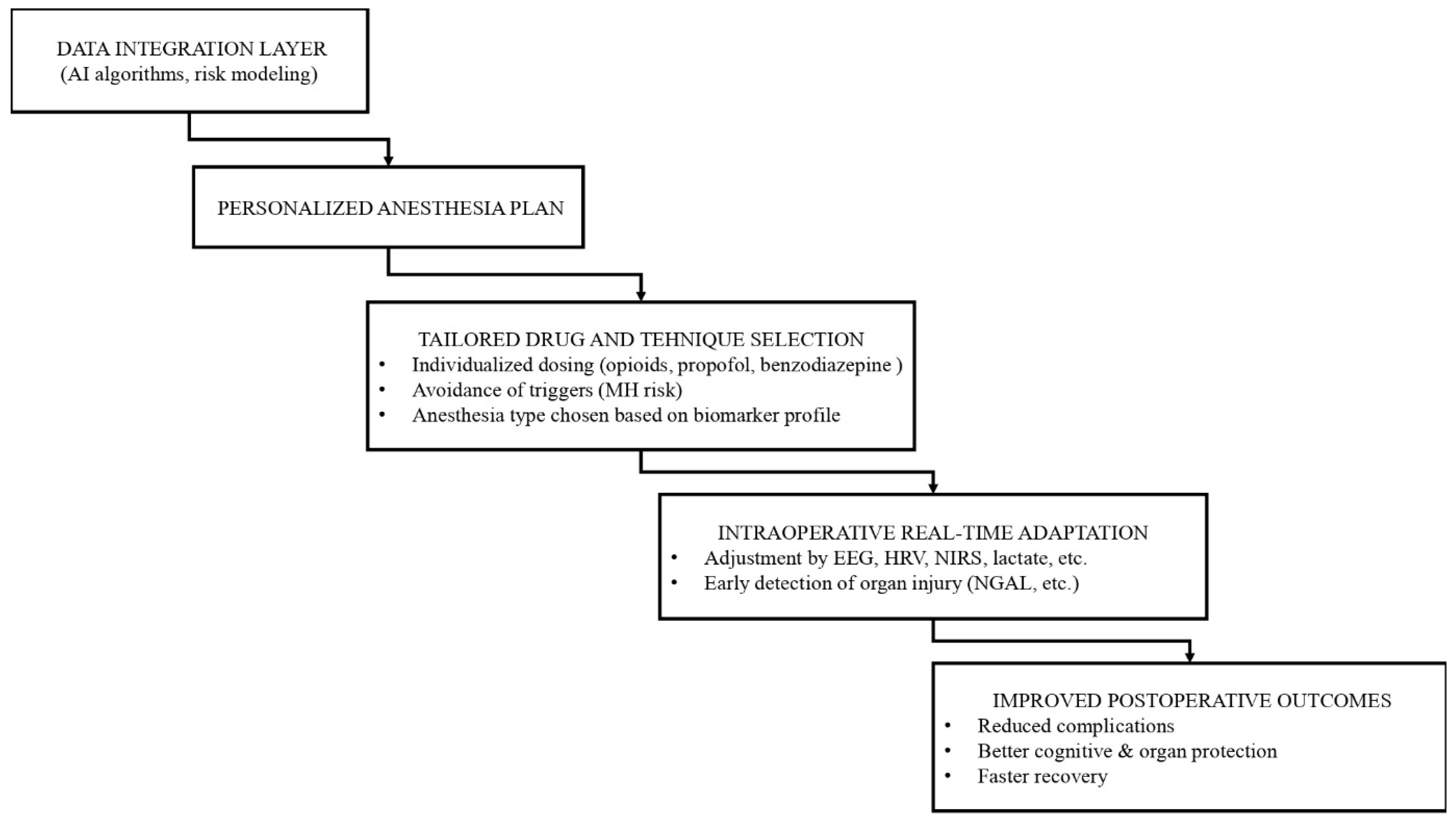 - Zeng, S.; Qing, Q.; Xu, W.; Yu, S.; Zheng, M.; Tan, H.; Peng, J.; Huang, J. Personalized anesthesia and precision medicine: A comprehensive review of genetic factors, artificial intelligence, and patient-specific factors. Front. Med. 2024, 11, 1365524. [Google Scholar] [CrossRef]