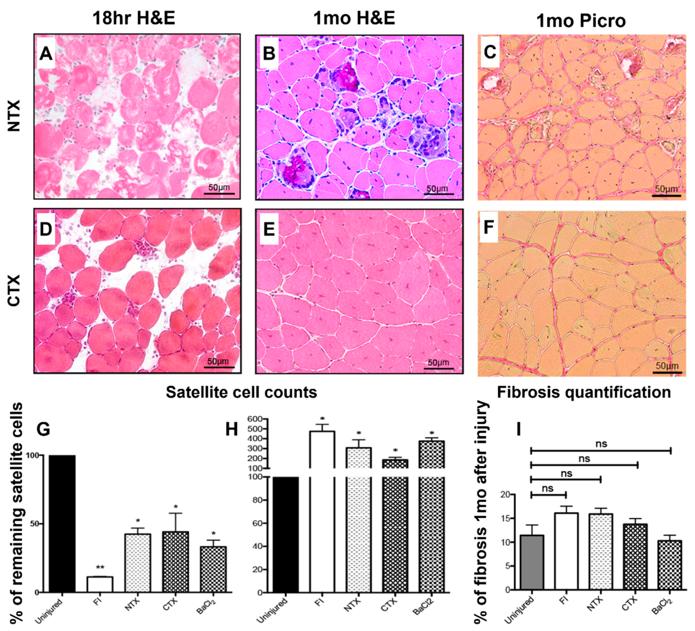 - Tierney, M.T.; Sacco, A. Inducing and Evaluating Skeletal Muscle Injury by Notexin and Barium C; Methods in Molecular Biology; Springer: Berlin/Heidelberg, Germany, 2016. [Google Scholar] [CrossRef]