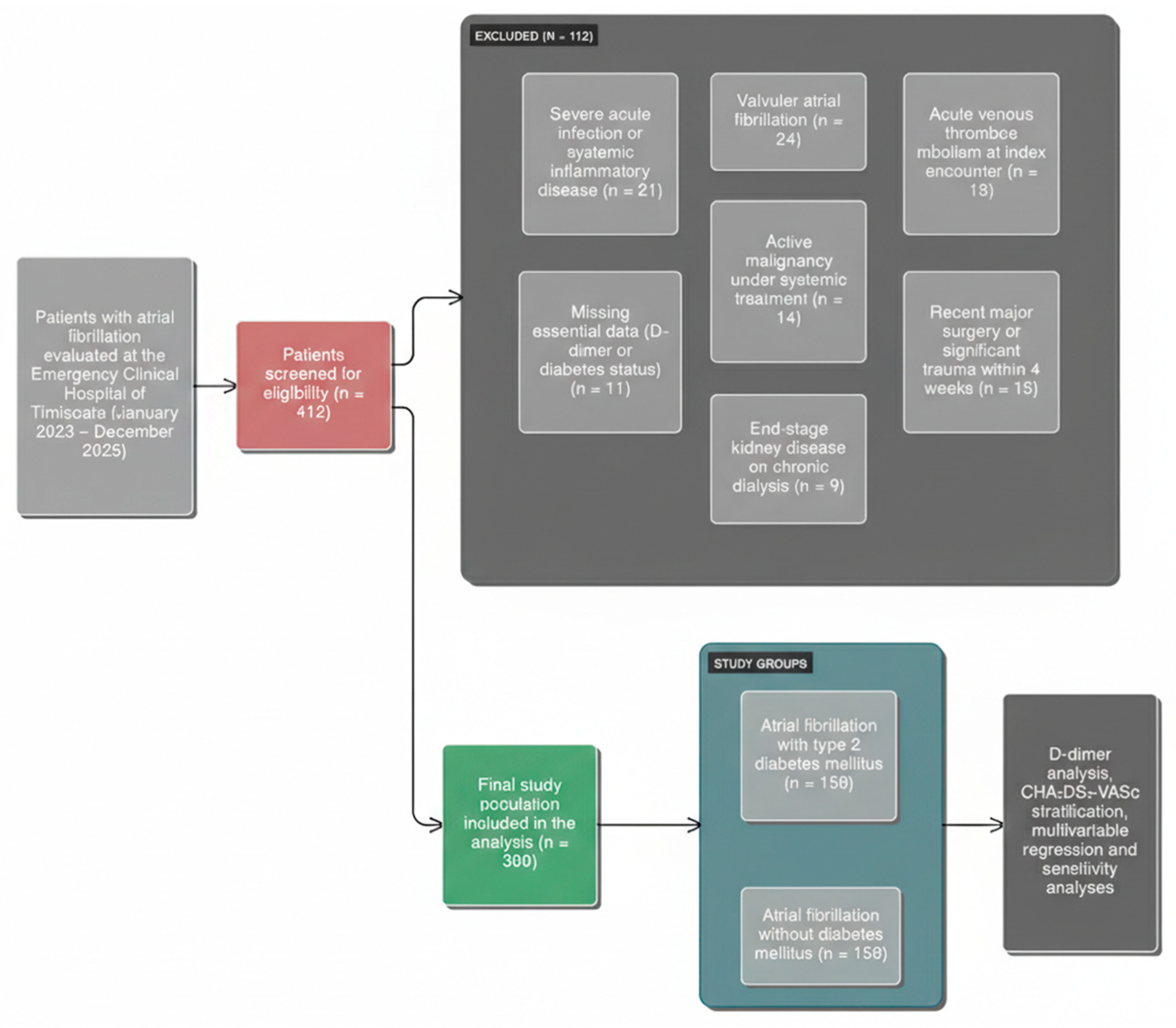 Chicago/Turabian StyleCiubotaru, Paul Gabriel, Amit Kohli, Nilima Rajpal Kundnani, Roxana Buzas, Marioara Nicula Neagu, Marius Preda, Vlad-Sabin Ivan, Mihaela-Diana Popa, Milan Daniel Velimirovici, and Daniel Florin Lighezan. 2026. "Type 2 Diabetes Is Associated with Increased Coagulation Activity in Patients with Atrial Fibrillation: A D-Dimer-Based Analysis" Biomedicines 14, no. 2: 332. https://doi.org/10.3390/biomedicines14020332