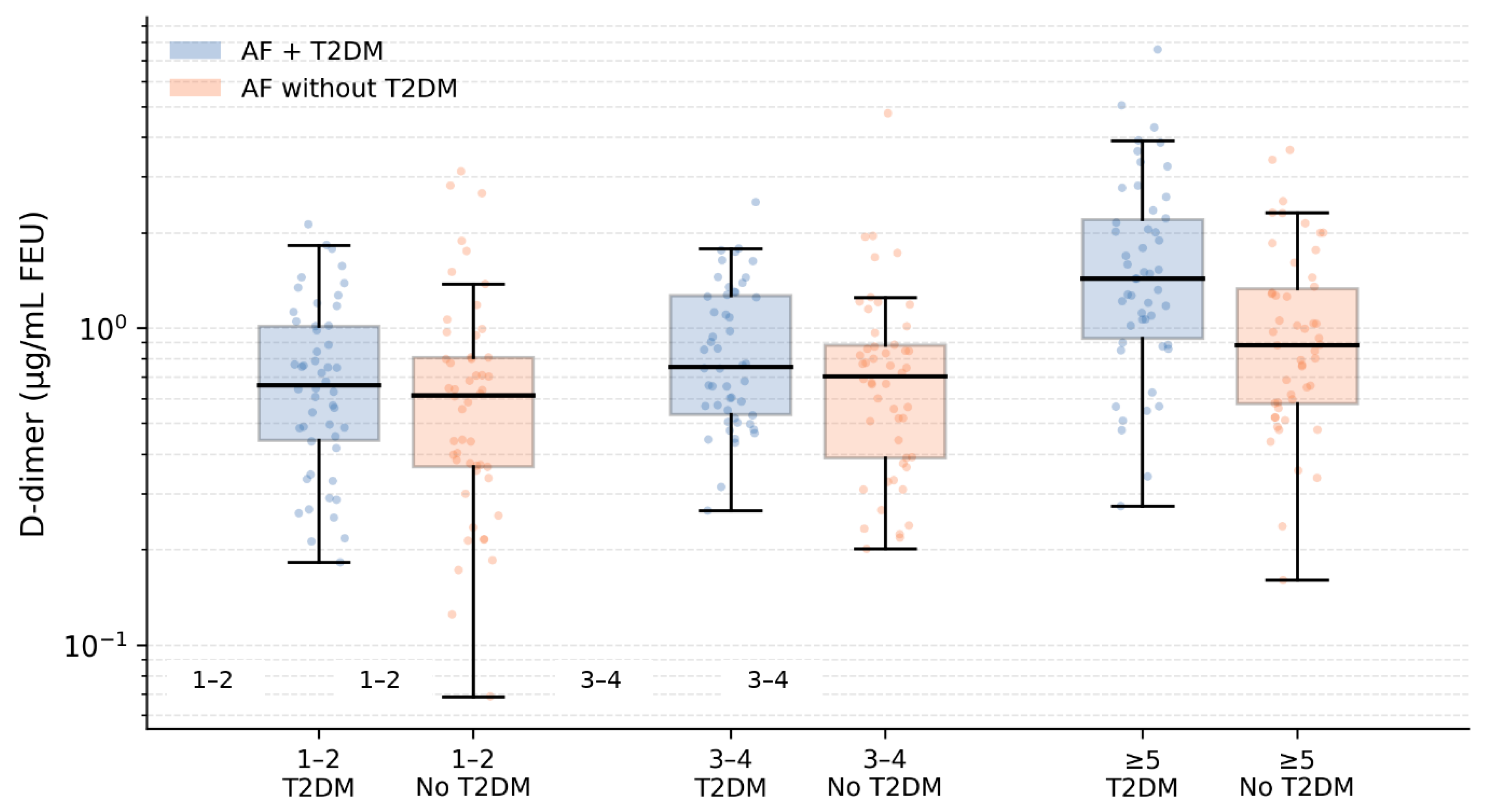 3.5. D-Dimer Levels Across CHA2DS2-VASc Categories