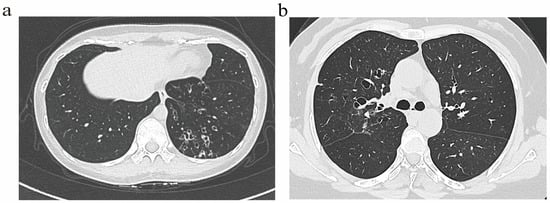 - Nishimura, K.; Kitaichi, M.; Izumi, T.; Itoh, H. Diffuse panbronchiolitis: Correlation of high-resolution CT and pathologic findings. Radiology 1992, 184, 779–785. [Google Scholar] [CrossRef]