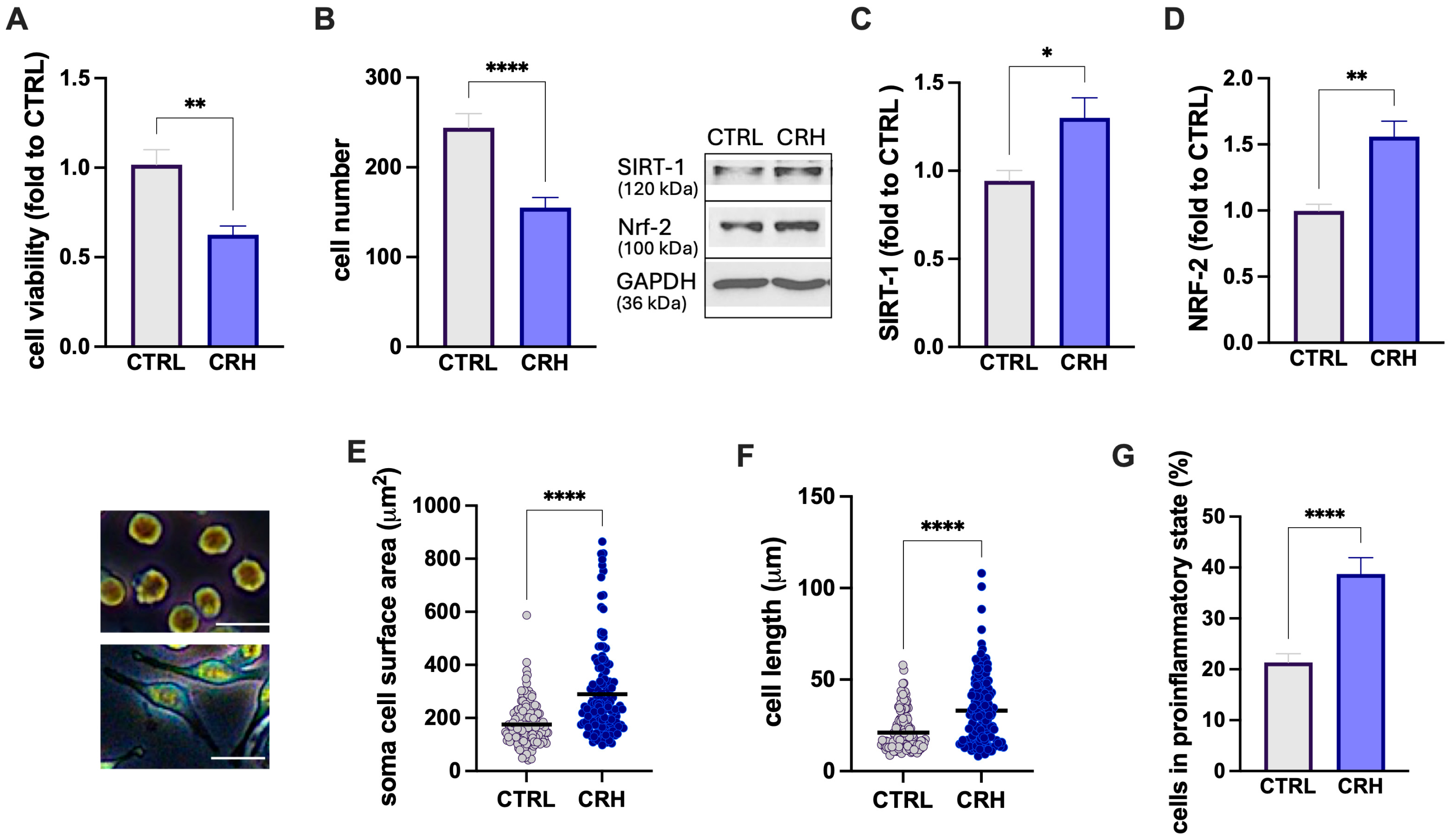 3.1.1. CRH Stimulation of BV2 Microglia Cells