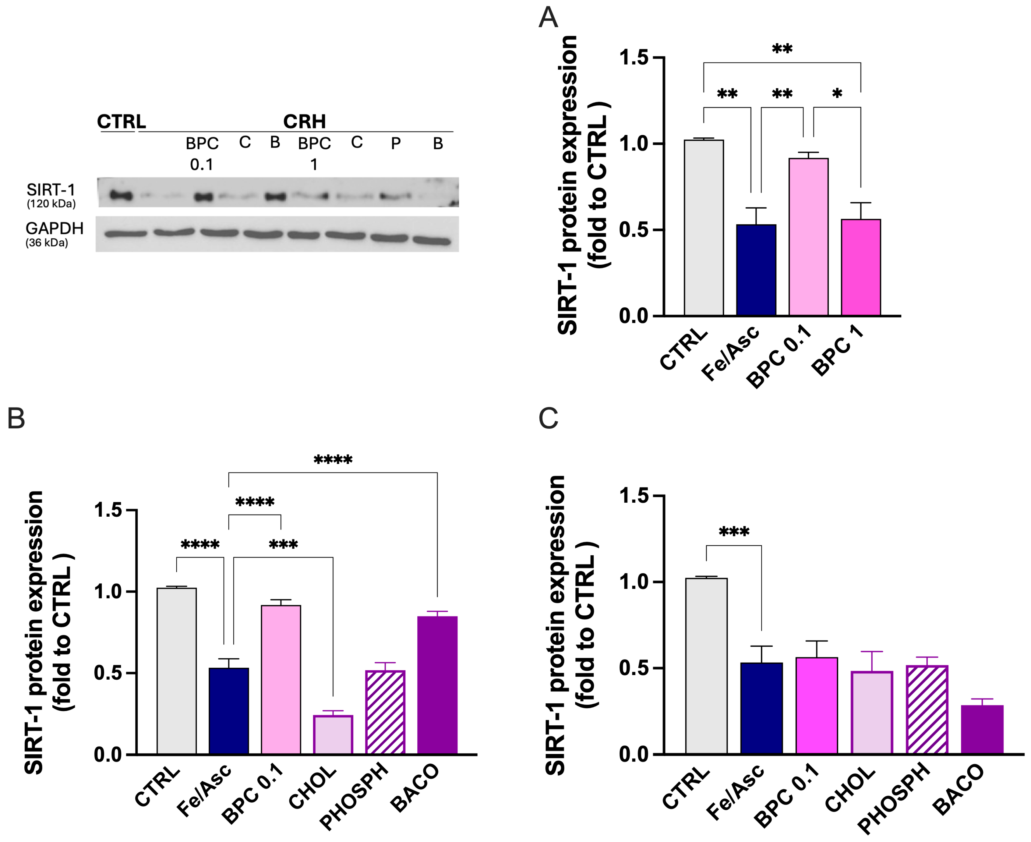 3.2.4. Restoration of SIRT-1 by BPC After Fe/Asc Exposure