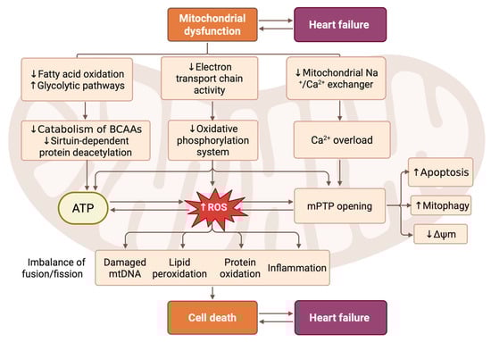 - Liu, M.; Lv, J.; Pan, Z.; Wang, D.; Zhao, L.; Guo, X. Mitochondrial dysfunction in heart failure and its therapeutic implications. Front. Cardiovasc. Med. 2022, 9, 945142. [Google Scholar] [CrossRef]