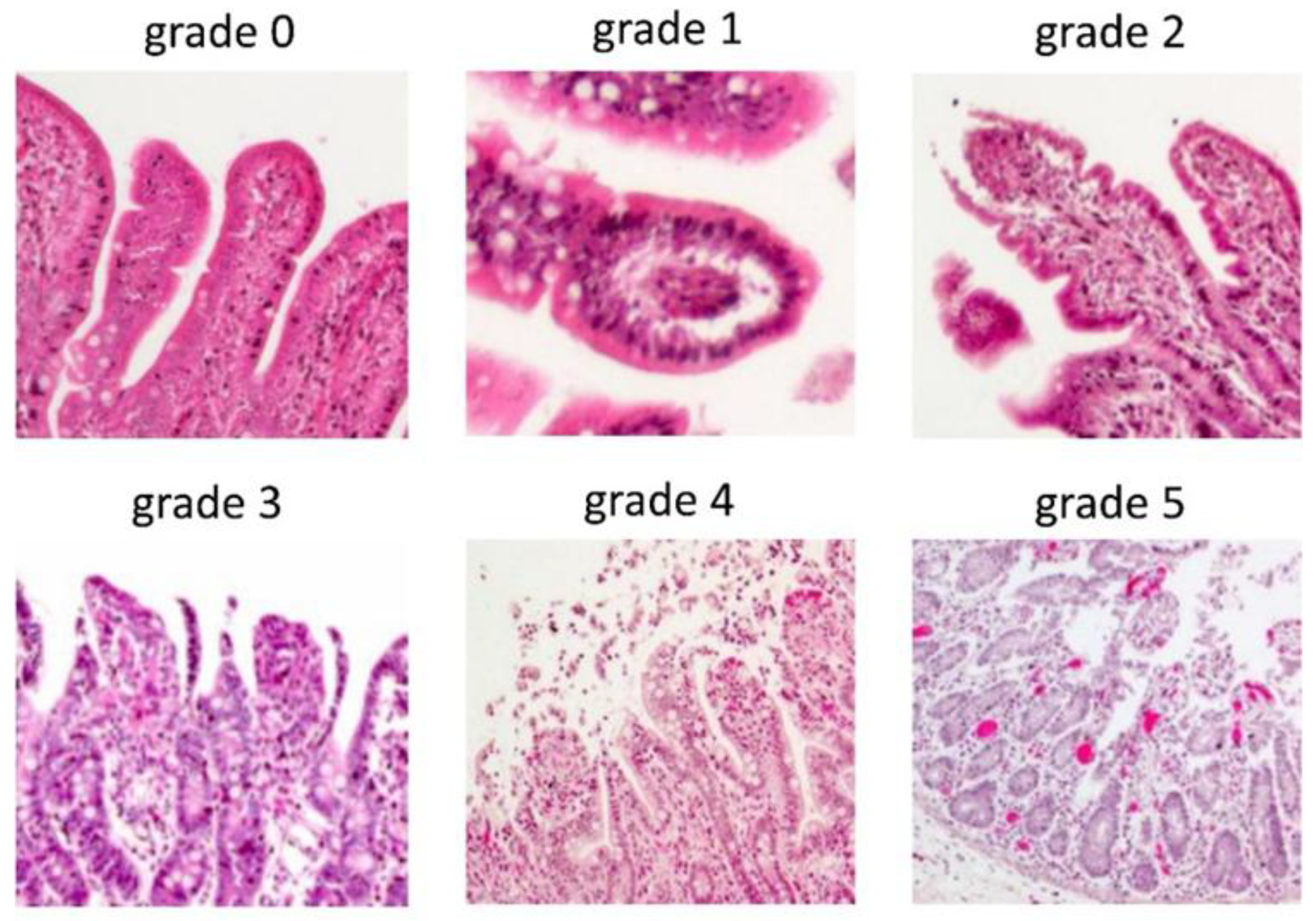 - Quaedackers, J.S.; Beuk, R.J.; Bennet, L.; Charlton, A.; oude Egbrink, M.G.; Gunn, A.J.; Heineman, E. An evaluation of methods for grading histologic injury following ischemia/reperfusion of the small bowel. Transplant. Proc. 2000, 32, 1307–1310. [Google Scholar] [CrossRef]