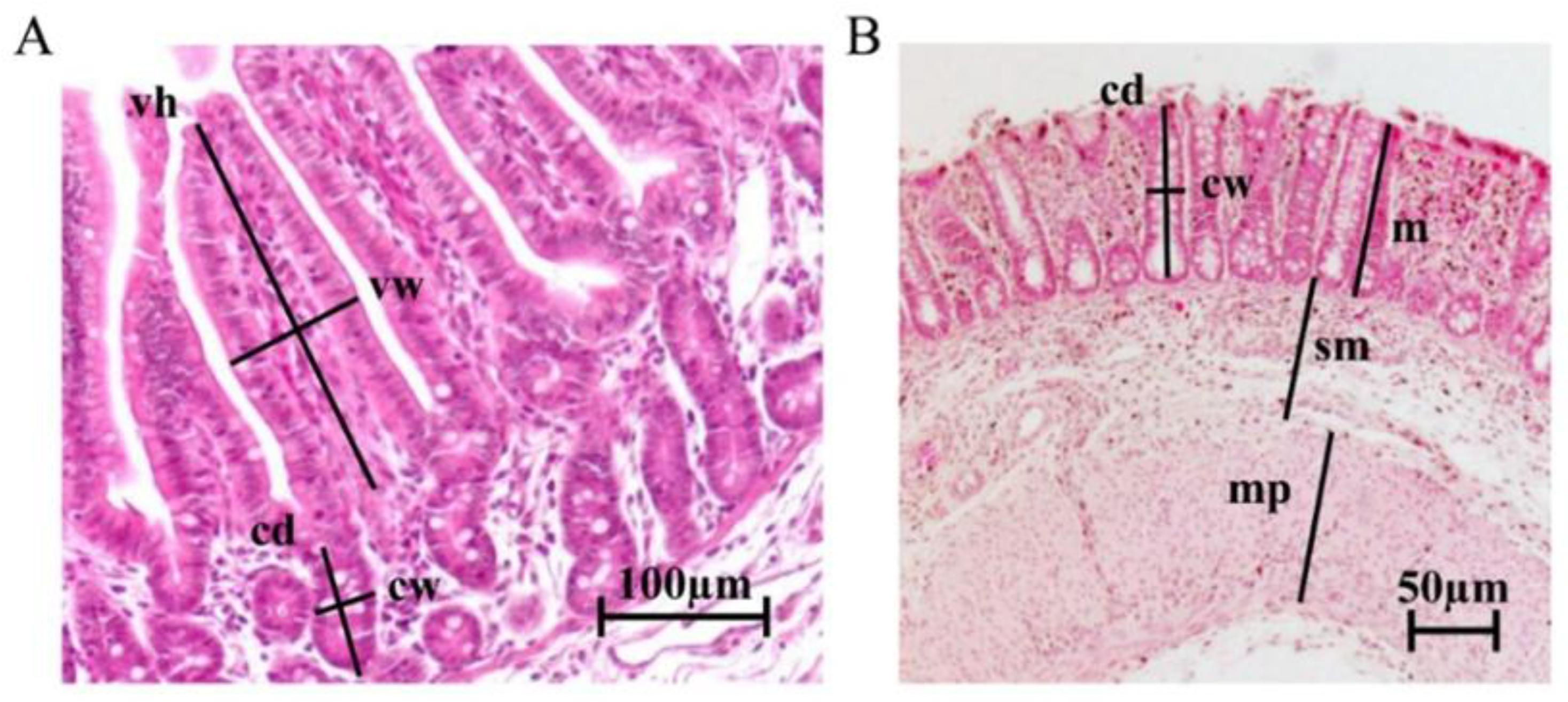 2.4. Histological Measurement of Intestinal Tissue