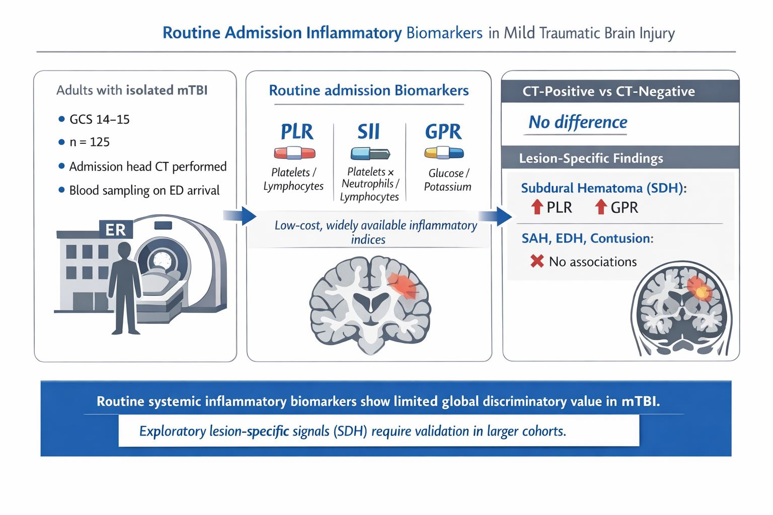 Lampros M, Vlachodimitropoulou L, Voulgaris S, Alexiou GA. Correlation of Routine Admission Inflammatory Biomarkers with Individual Traumatic Brain Lesion Types in Mild Traumatic Brain Injury. Biomedicines. 2026; 14(2):365. https://doi.org/10.3390/biomedicines14020365
