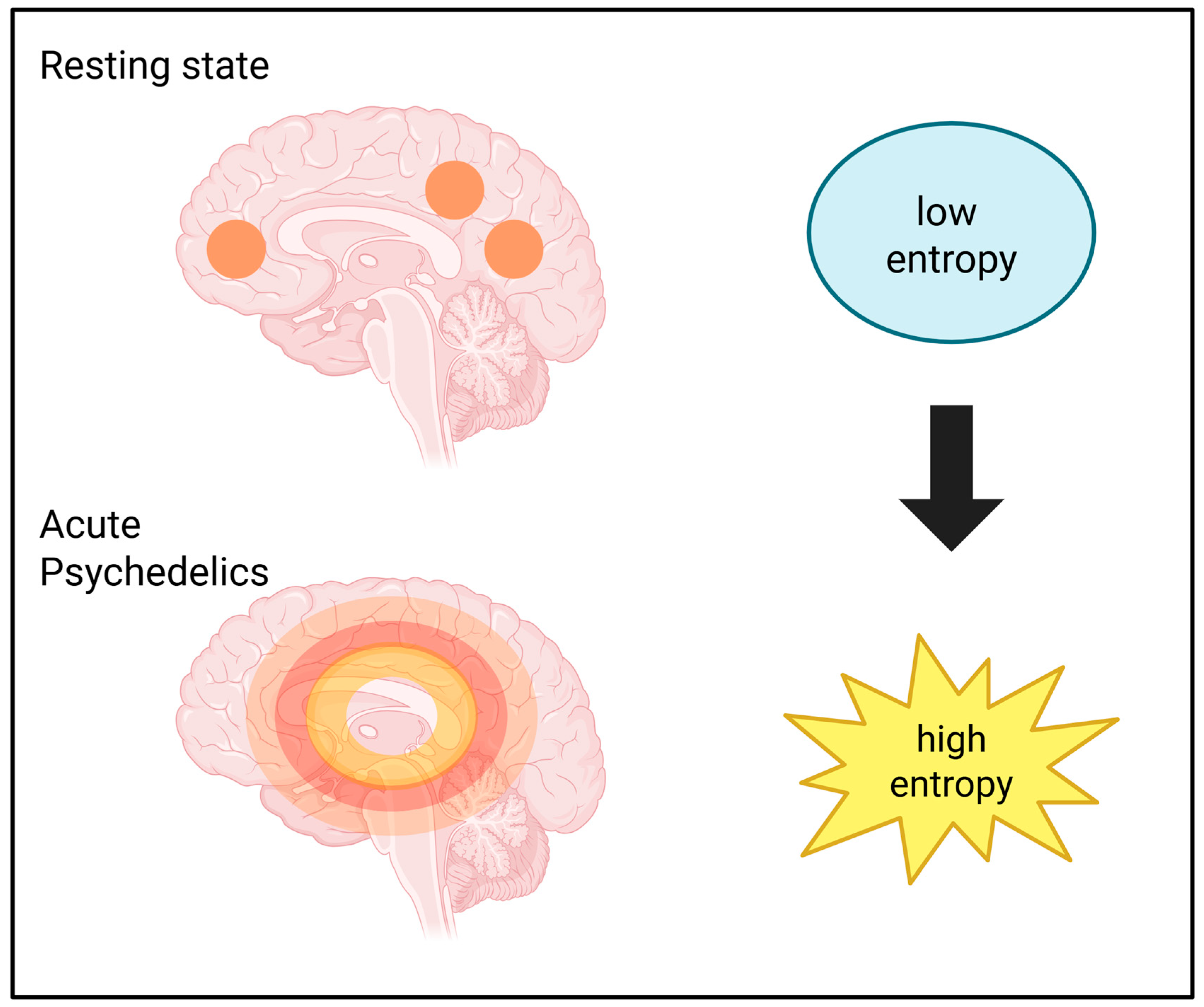 - Carhart-Harris, R.L.; Leech, R.; Hellyer, P.J.; Shanahan, M.; Feilding, A.; Tagliazucchi, E.; Chialvo, D.R.; Nutt, D. The Entropic Brain: A Theory of Conscious States Informed by Neuroimaging Research with Psychedelic Drugs. Front. Hum. Neurosci. 2014, 8, 20. [Google Scholar] [CrossRef] [PubMed]