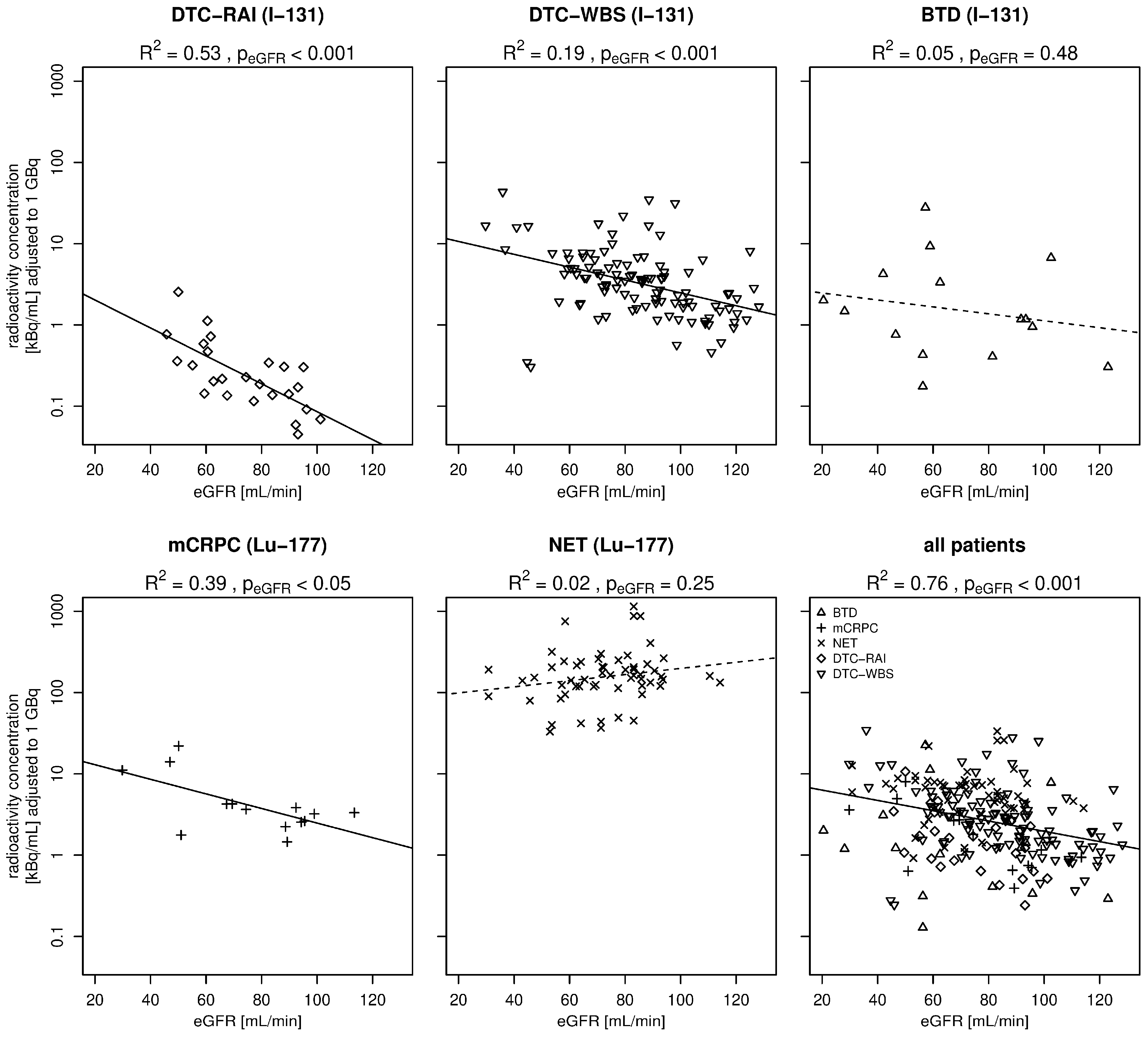 - Vogel, K.; Opfermann, T.; Wiegand, S.; BIermann, J.; Busch, M.; Winkens, T.; Freesmeyer, M. Relationship between estimated glomerular filtration rate and biological half-life of 131I. Nuklearmedizin 2013, 52, 164–169. [Google Scholar] [CrossRef]