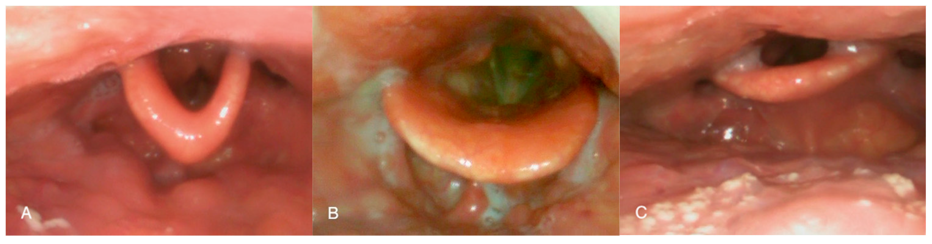 24]. When the negative pressure difference increases to a critical value in the lumen behind the laryngeal surface of the epiglottis, it acts as a one-way valve, and sudden closure occurs with the airflow being completely interrupted—a mechanism known as the “trap-door phenomenon”.