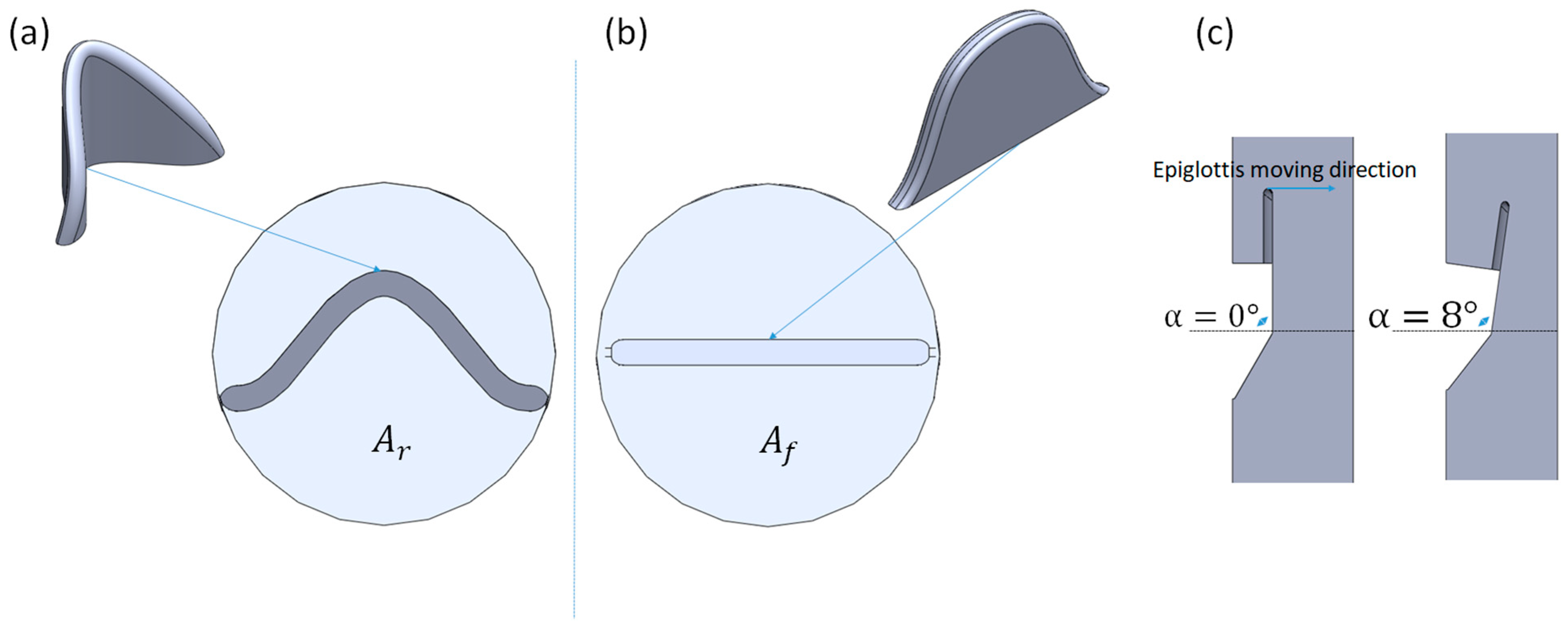 Figure 4b depicts a flat epiglottis. The cross-sectional airflow areas between the two shapes are very similar, with a difference of less than 1%.
