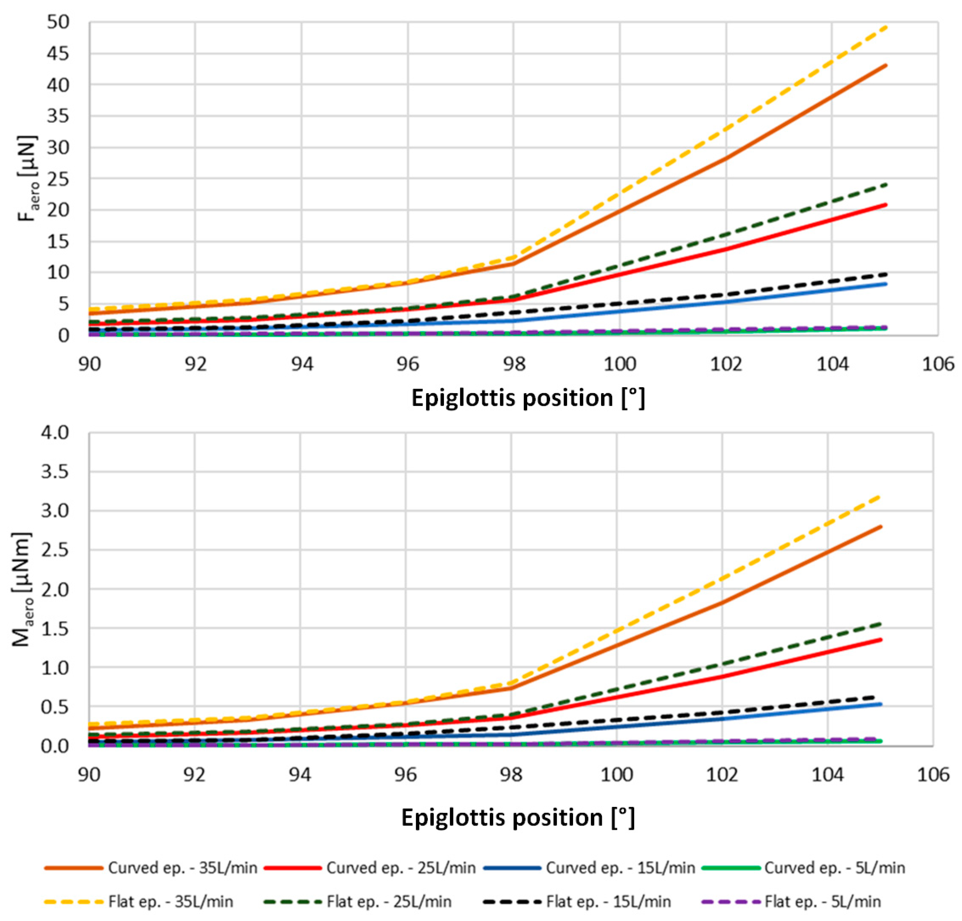In order to analyze the results and compare the effect of different epiglottis shapes, several parameters were evaluated. First, the magnitude and direction of the aerodynamic force