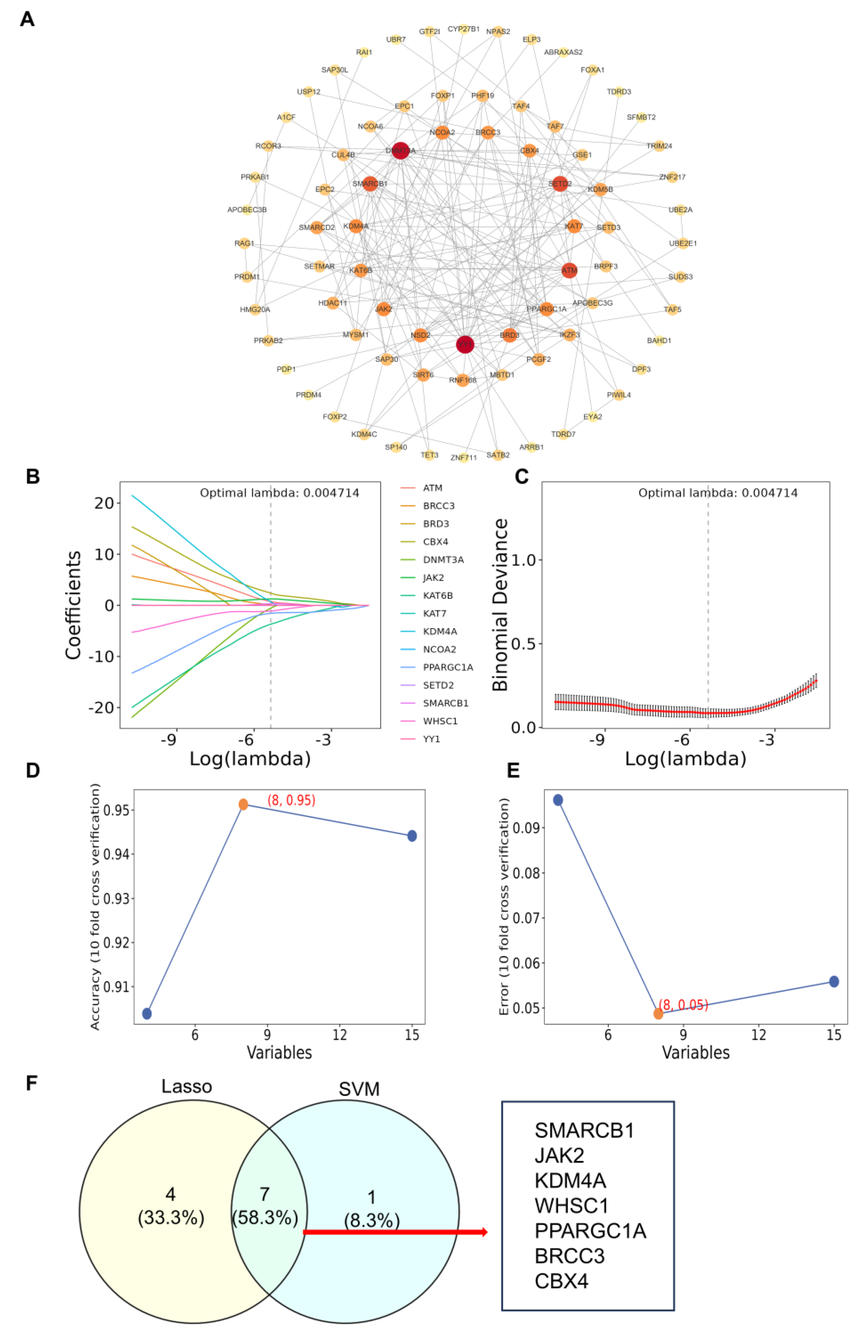 3.2. Screening of 7 Characteristic Genes SMARCB1, JAK2, CBX4, KDM4A, WHSC1, BRCC3 and PPARGC1A