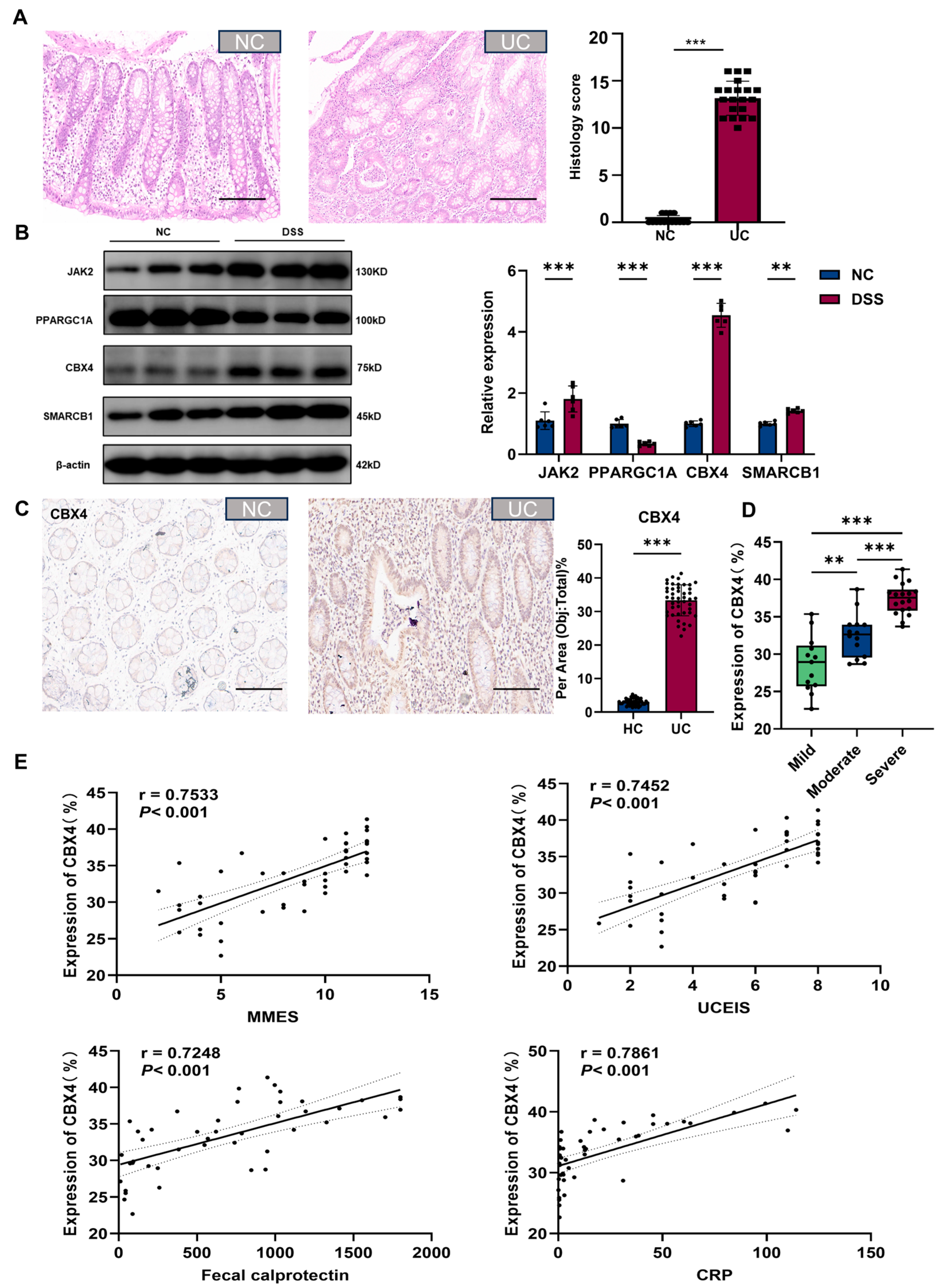 3.7. Silencing CBX4 Alleviates DSS-Induced UC in Mice