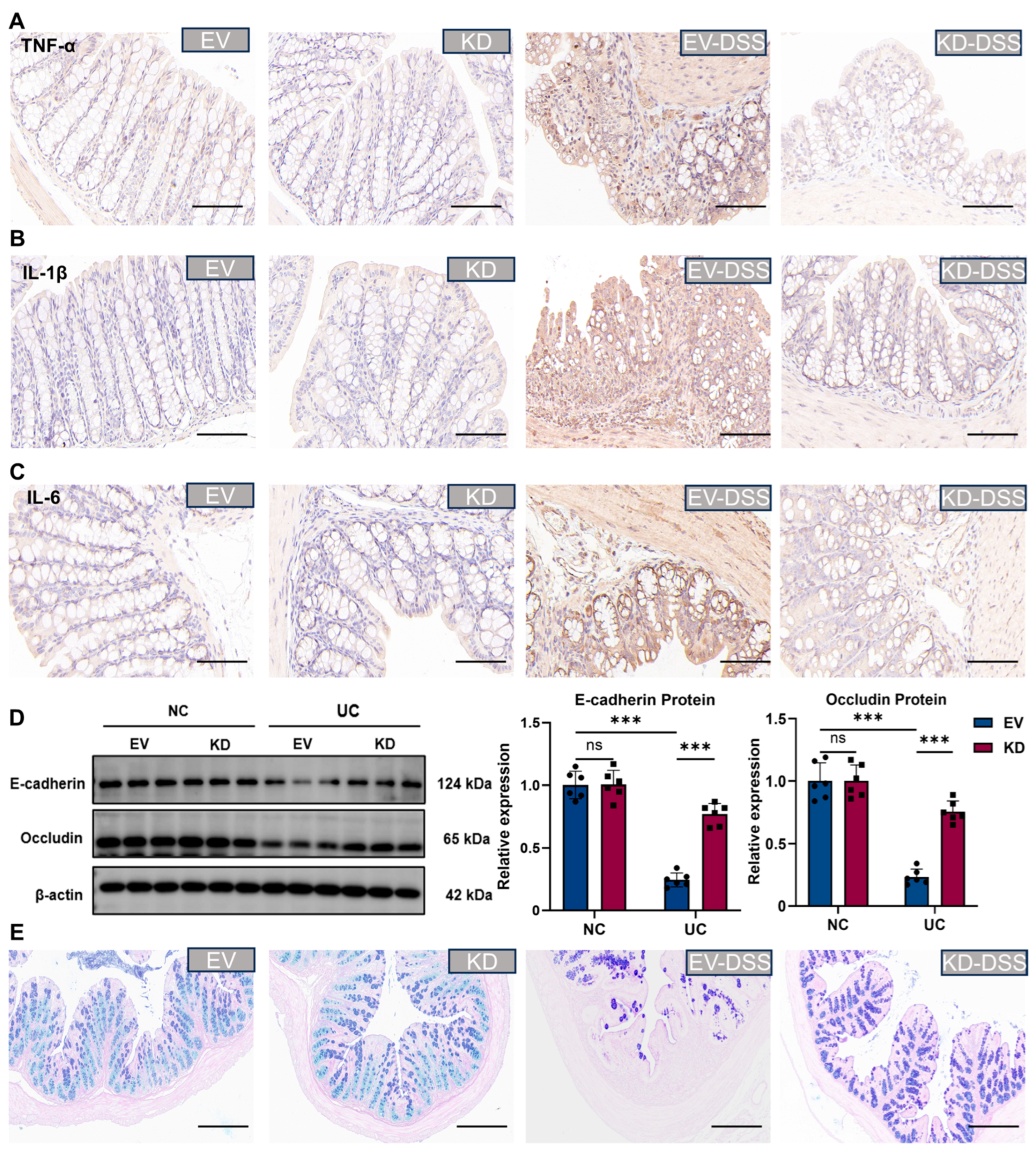 3.8. Silencing CBX4 Ameliorated Intestinal Inflammatory Responses and Mucosal Barrier Function in UC Mice