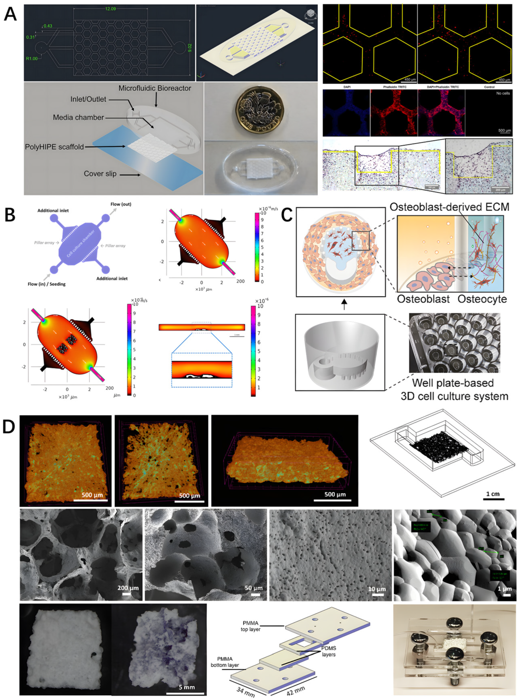 - Galván-Chacón, V.P.; Zampouka, A.; Hesse, B.; Bohner, M.; Habibovic, P.; Barata, D. Bone-on-a-Chip: A Microscale 3D Biomimetic Model to Study Bone Regeneration. Adv. Eng. Mater. 2022, 24, 2101467. [Google Scholar] [CrossRef]