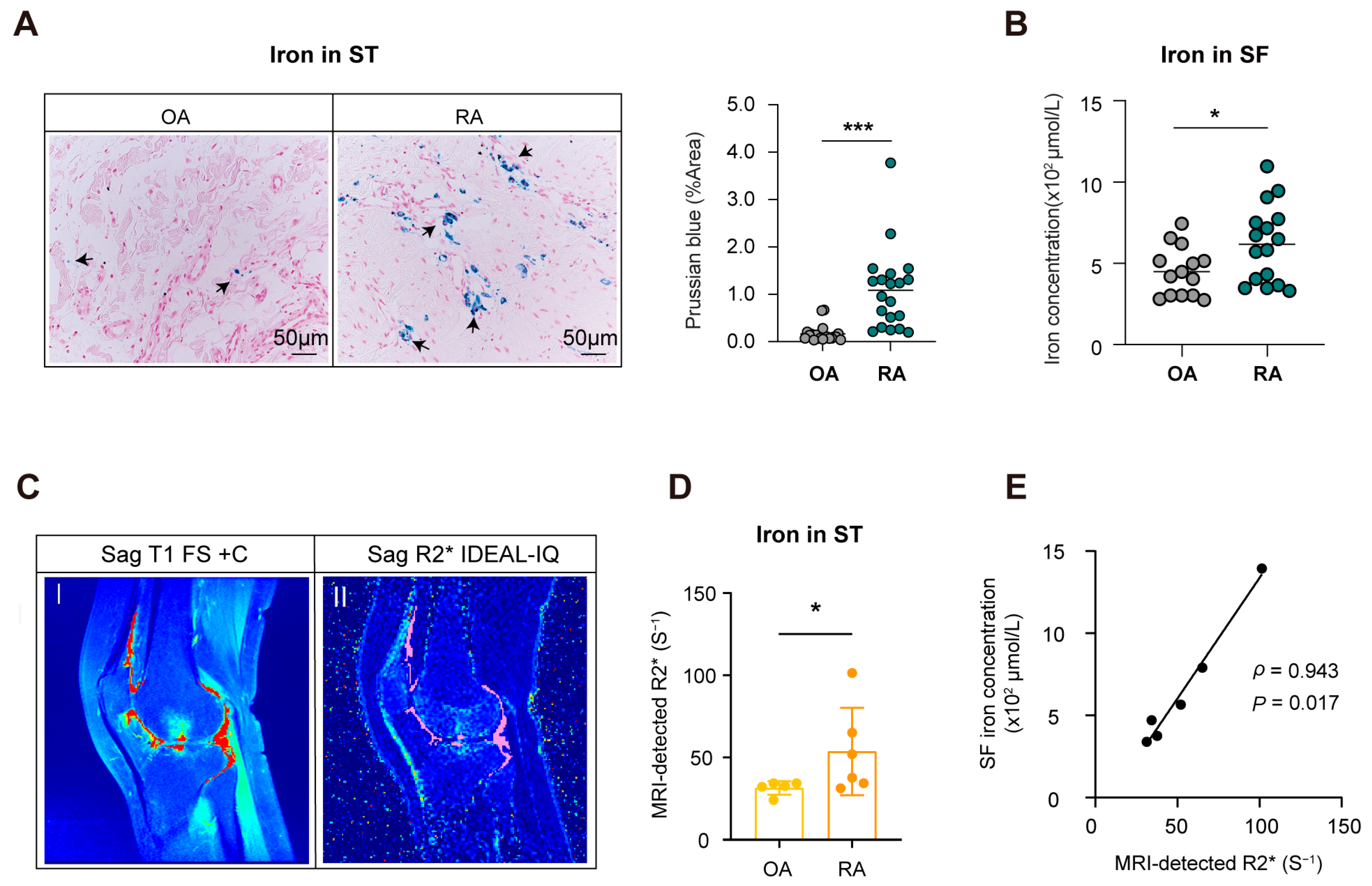 2.3. Iron Quantification in Synovial Fluid and Synovium