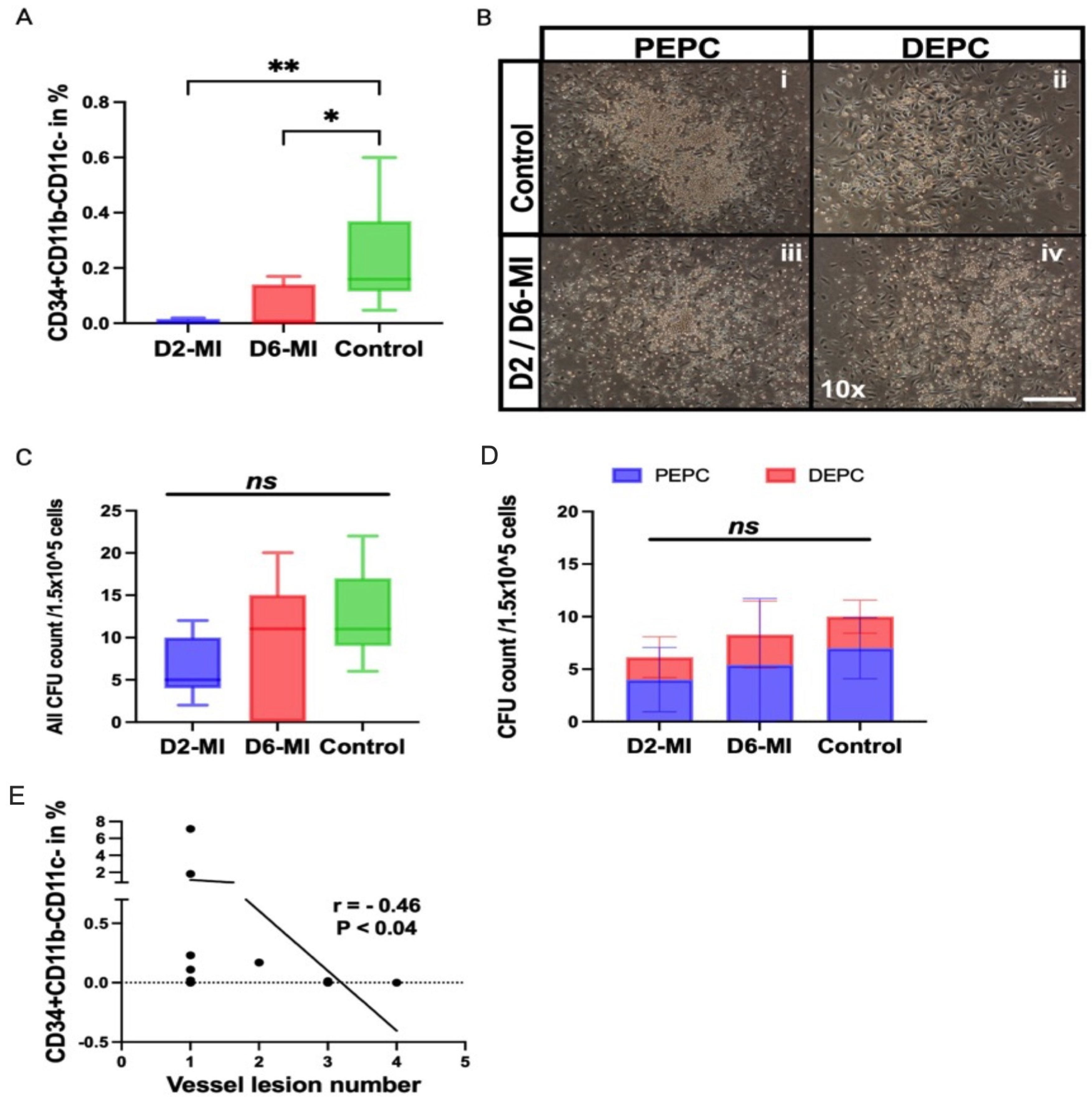 3.5. The Tendency of EPC Colony Formation Is Reduced and Negatively Correlates with Lesion Burden