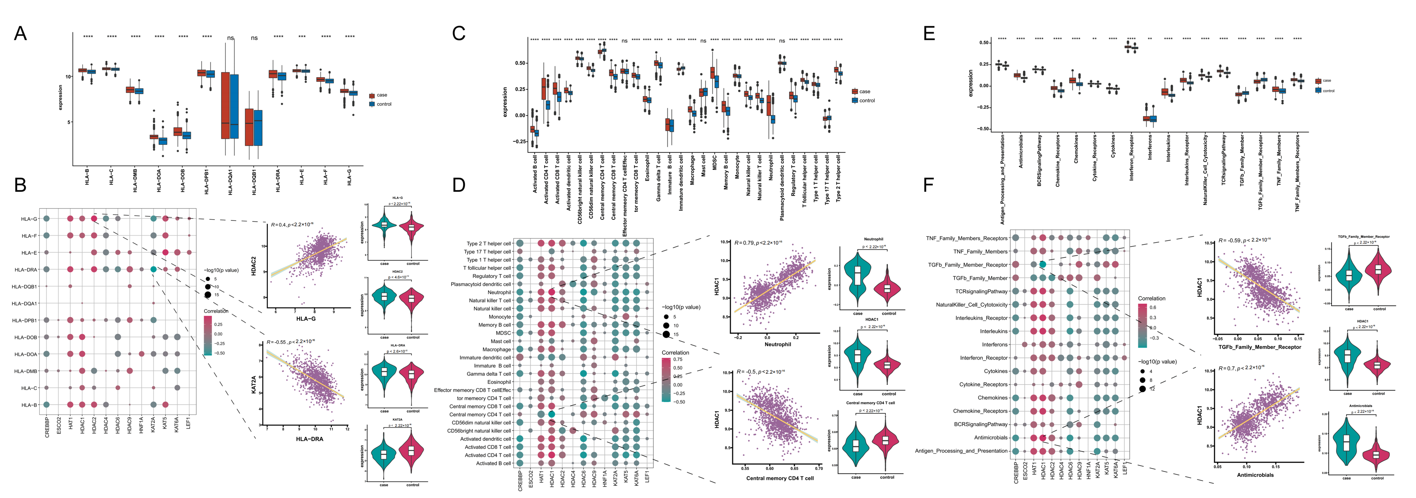 To analyze the associations of acetylation regulatory factors with human leukocyte antigen (HLA) genes, infiltrating immunocytes, and immune reaction pathways, we first used single-sample gene set enrichment analysis (ssGSEA). The HLA gene set was obtained from previous research [